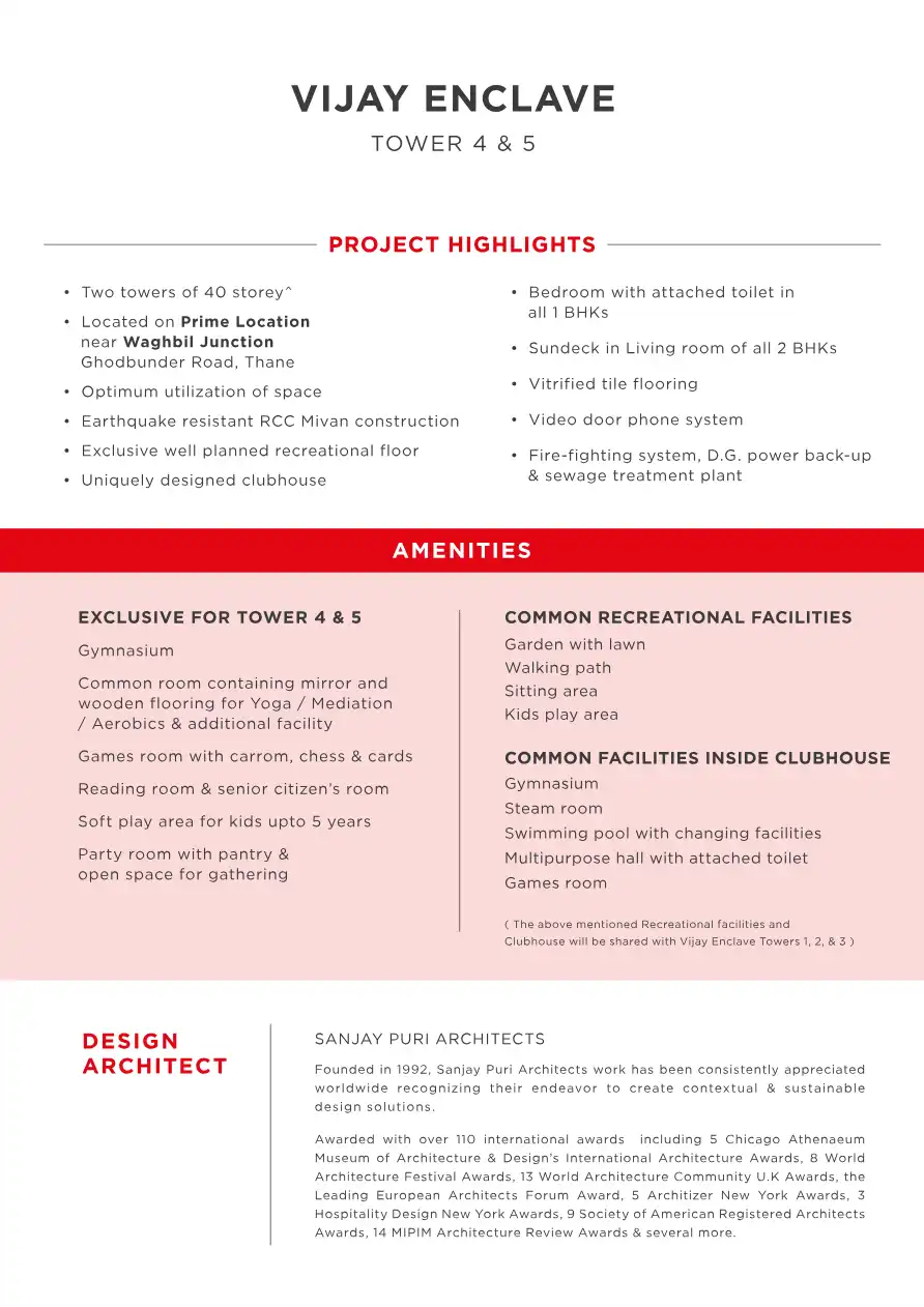 Vijay Enclave at Waghbil, Thane offers 1 and 2 BHK homes in Tower 4 & 5.
