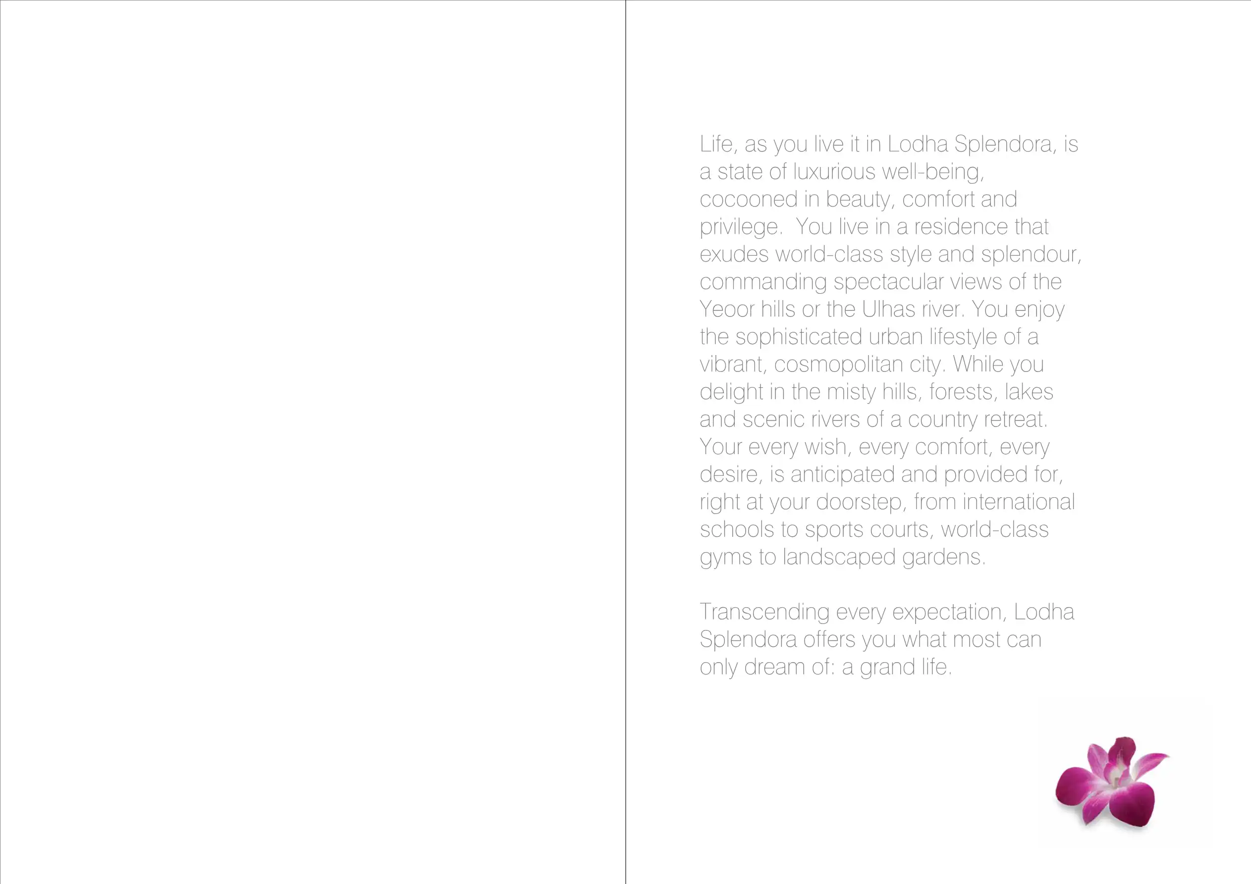 Life, as you live it in Lodha Splendora, is a state of luxurious well-being, cocooned in beauty, comfort and privilege.
