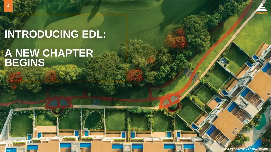 EDL has upcoming projects which generate GDV in excess of ₹48,000 Cr, besides additional future fully paid developable land banks