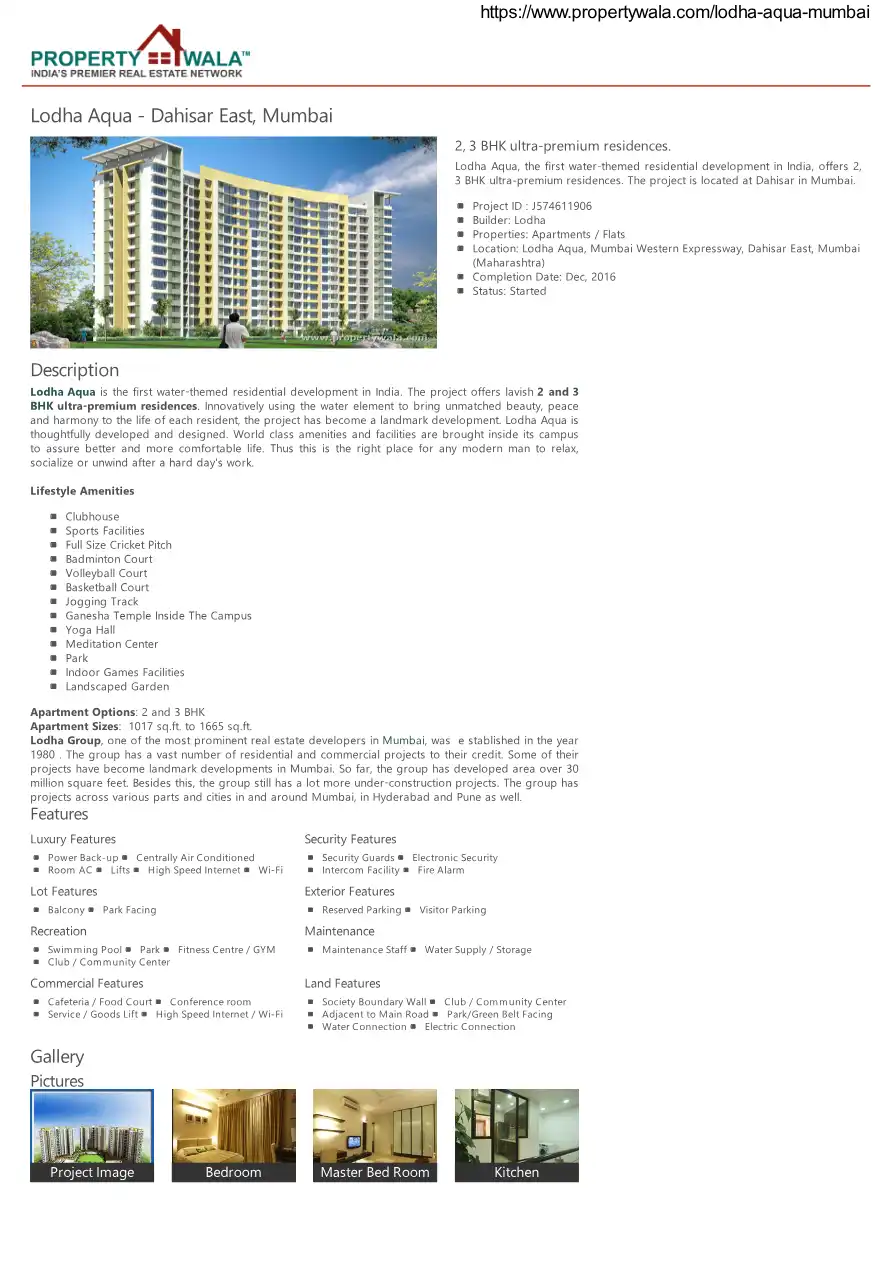 Lodha Aqua is the first water-themed residential development in India. The project offers lavish 2 and 3 BHK ultra-premium residences. Innovatively using the water element to bring unmatched beauty, peace and harmony to the life of each resident, the...