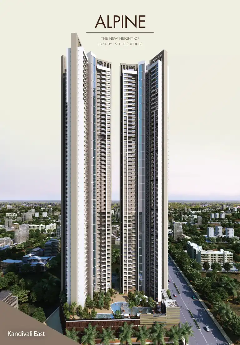 Alpine is a 63-storey residential twin tower and is among the tallest in the suburbs. Alpine is all set to redefine the skyline of Kandivali East. Alpine consists of 2 BHK, 3 BHK (Premium) and 3 BHK (Luxury) apartments that have been aesthetically de...