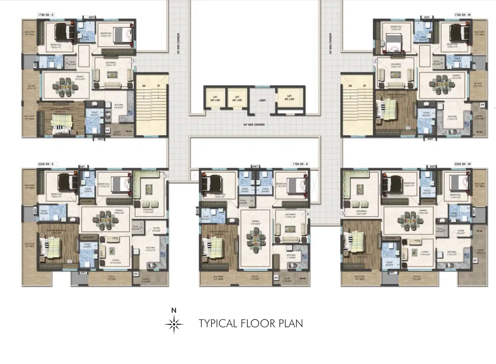 Hamptons features 68 exclusive 3 BHK apartments ranging from 1660 to 2225 Sft. spread across an area of one acre.