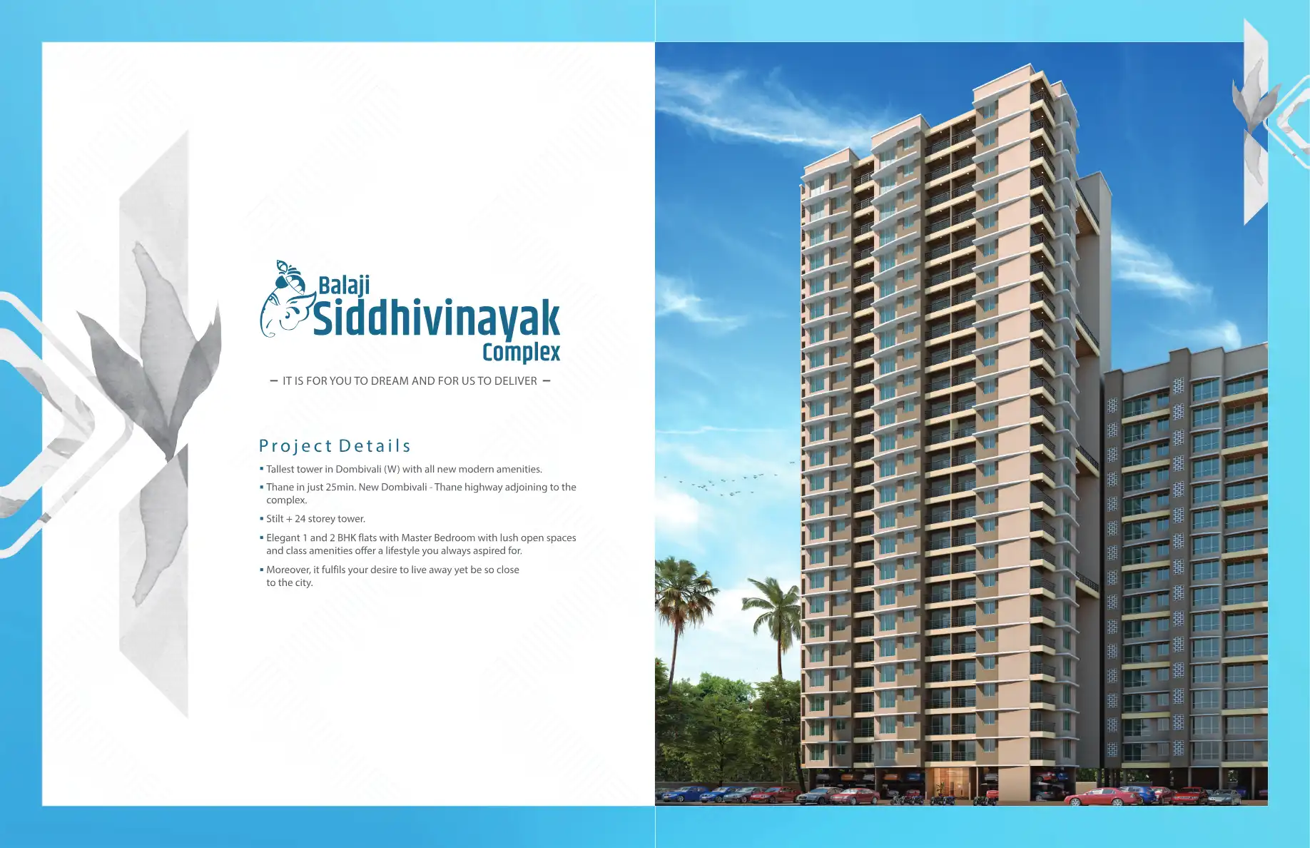 Tallest tower in Dombivali (W) with all new modern amenities. Thane in just 25min. New Dombivali - Thane highway adjoining to the complex. Stilt + 24 storey tower. Elegant 1 and 2 BHK flats with Master Bedroom with lush open spaces and class amenitie...