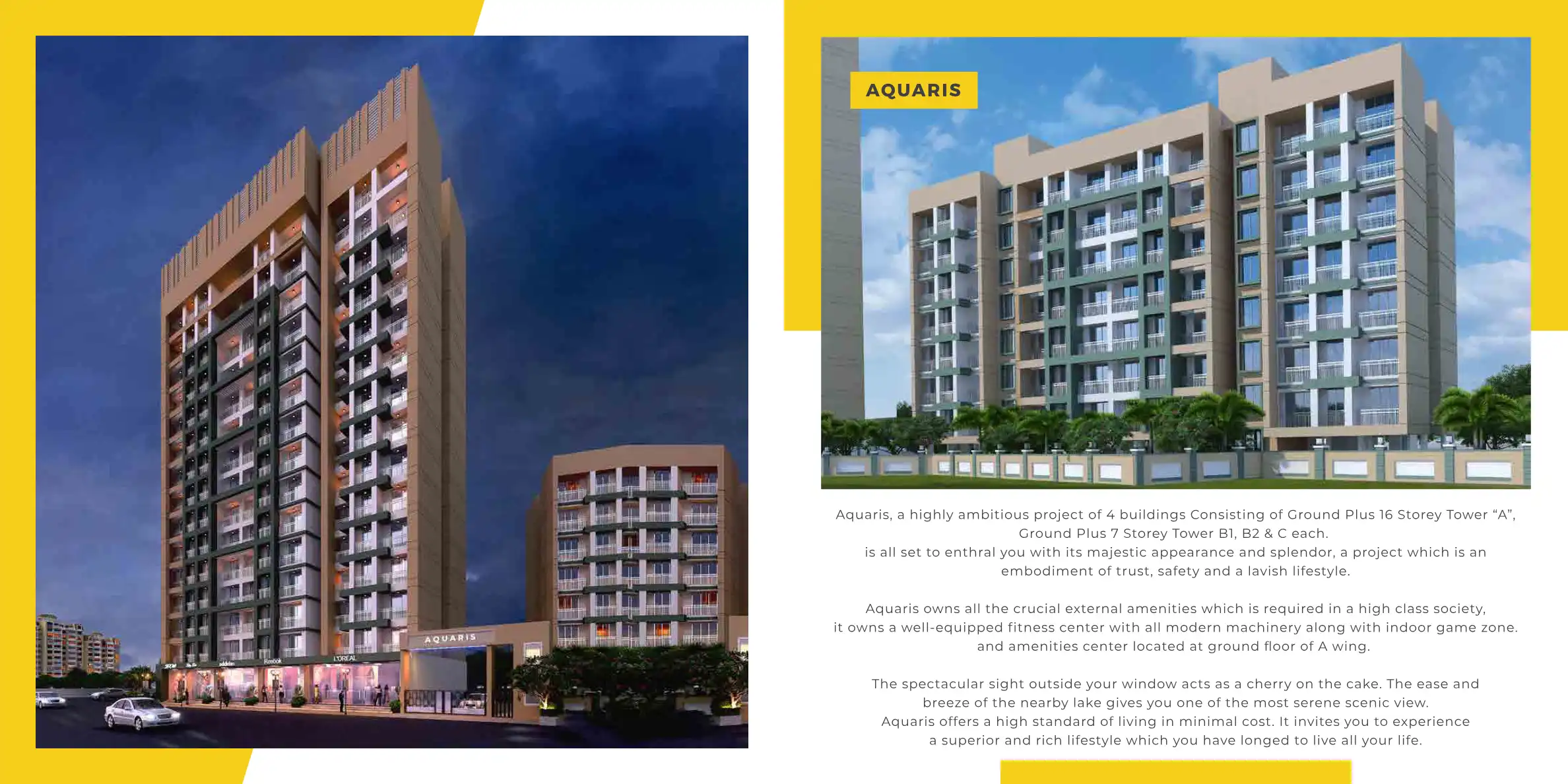 Aquaris, a highly ambitious project of 4 buildings Consisting of Ground Plus 16 Storey Tower "A", Ground Plus 7 Storey Tower B1, B2 & C each. is all set to enthral you with its majestic appearance and splendor, a project which is an embodiment of tru...