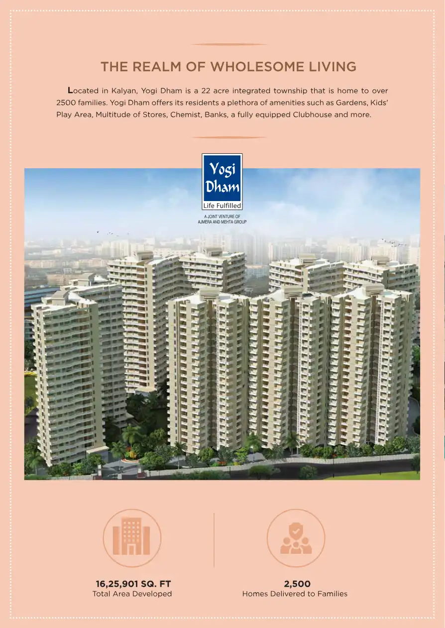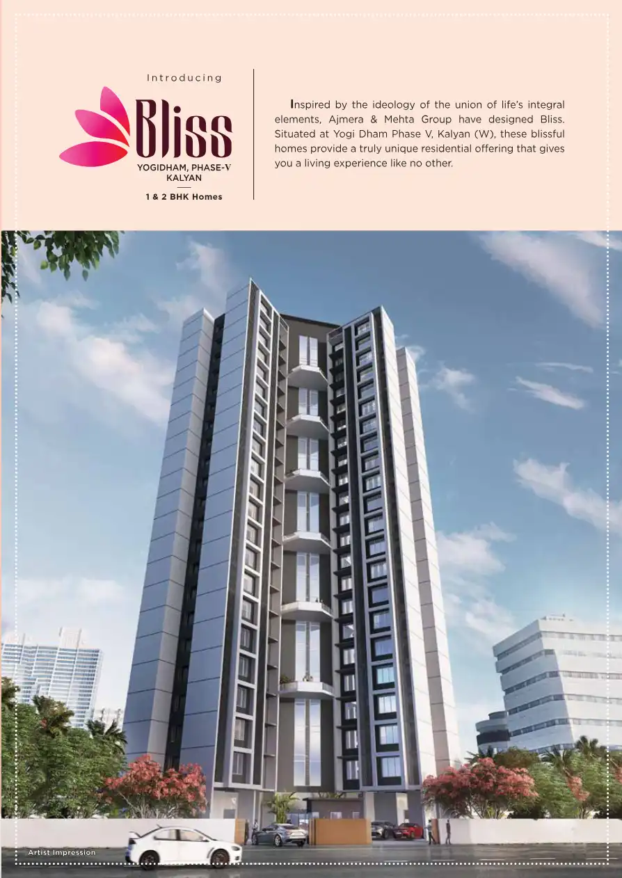 Inspired by the ideology of the union of life's integral elements, Ajmera & Mehta Group have designed Bliss. Situated at Yogi Dham Phase V, Kalyan (W), these blissful homes provide a truly unique residential offering that gives you a living experienc...
