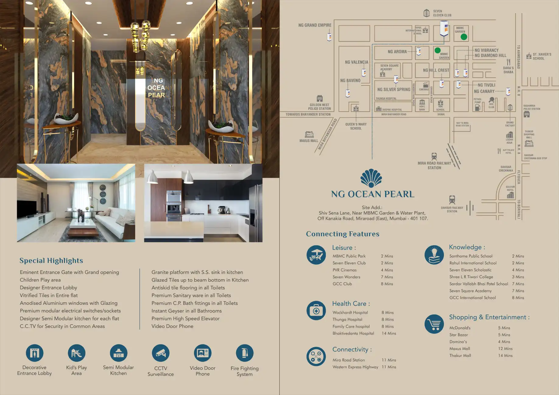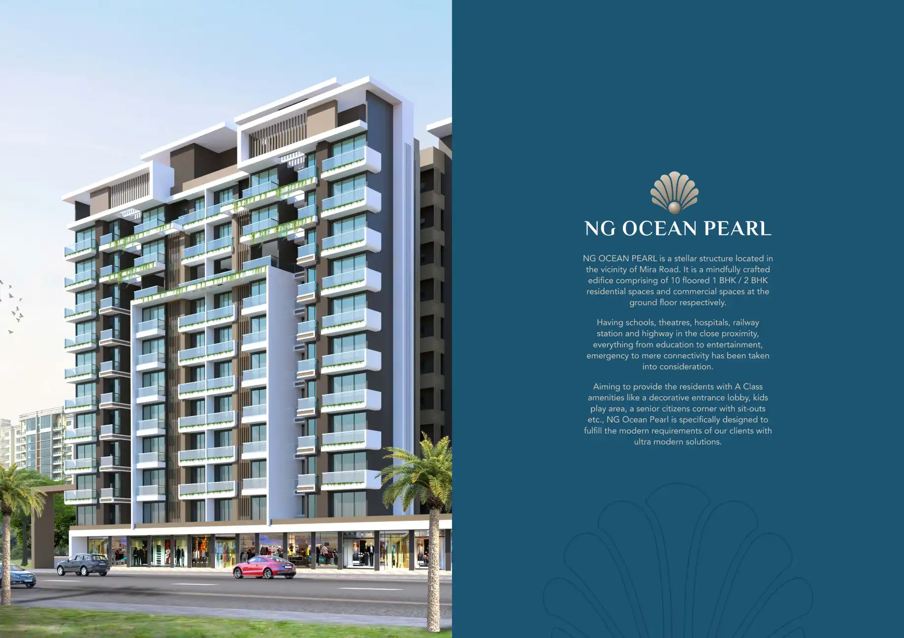 NG OCEAN PEARL is a stellar structure located in the vicinity of Mira Road. It is a mindfully crafted edifice comprising of 10 floored 1 BHK / 2 BHK residential spaces and commercial spaces at the ground floor respectively.