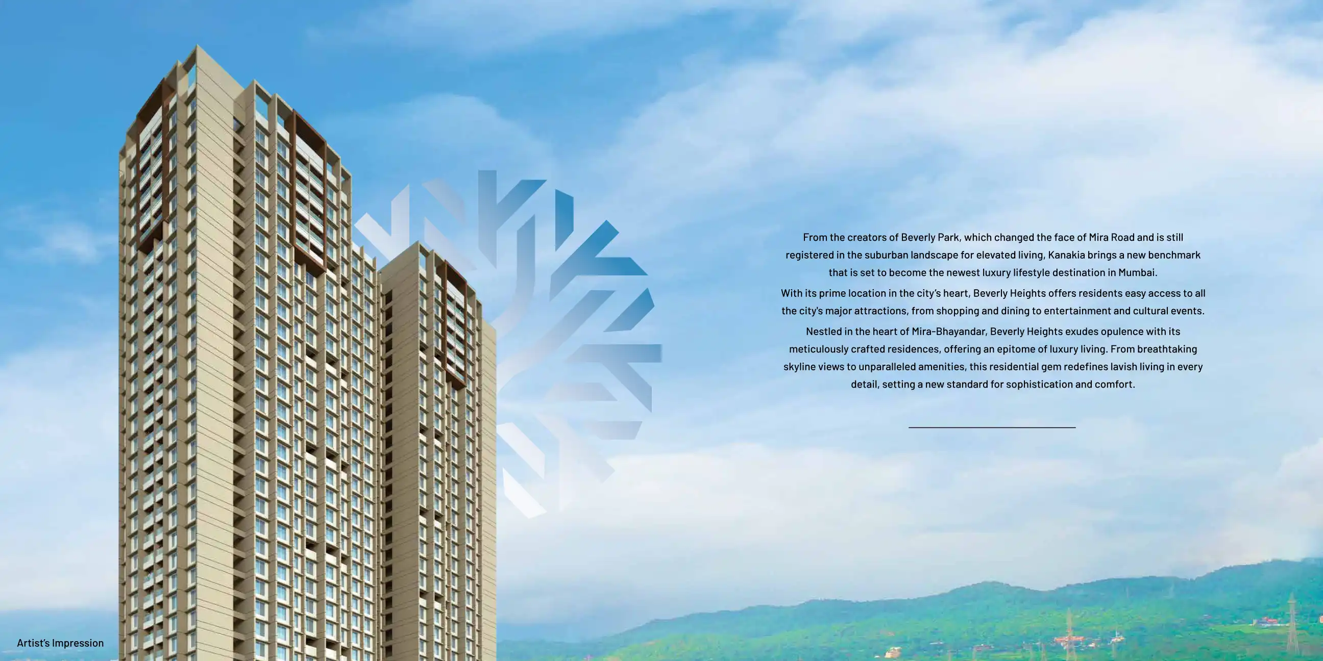From the creators of Beverly Park, which changed the face of Mira Road and is still registered in the suburban landscape for elevated living, Kanakia brings a new benchmark that is set to become the newest luxury lifestyle destination in Mumbai.