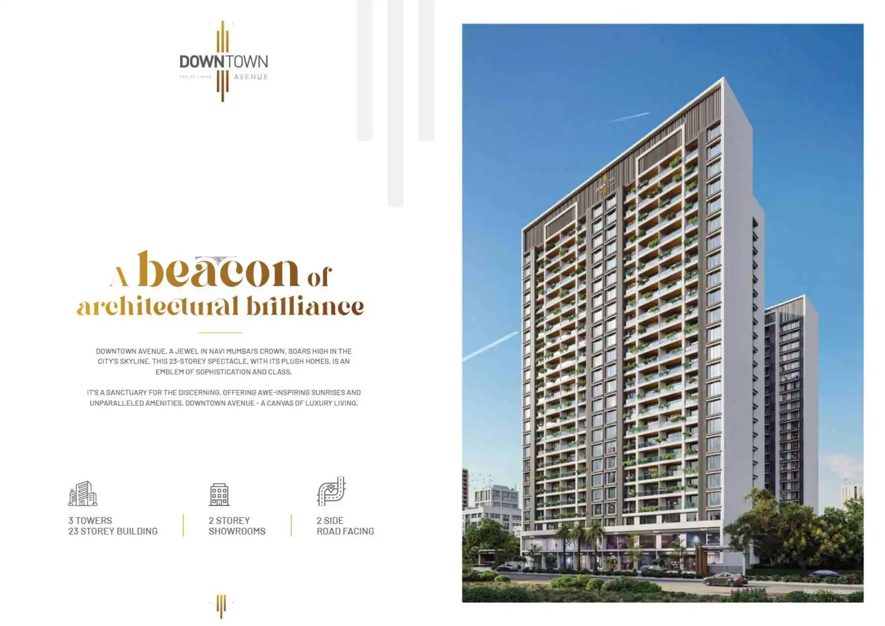 Downtown Avenue, a jewel in Navi Mumbai's crown, soars high in the city's skyline. This 23-storey spectacle, with its plush homes, is an emblem of sophistication and class. It's a sanctuary for the discerning, offering awe-inspiring sunrises and unpa...