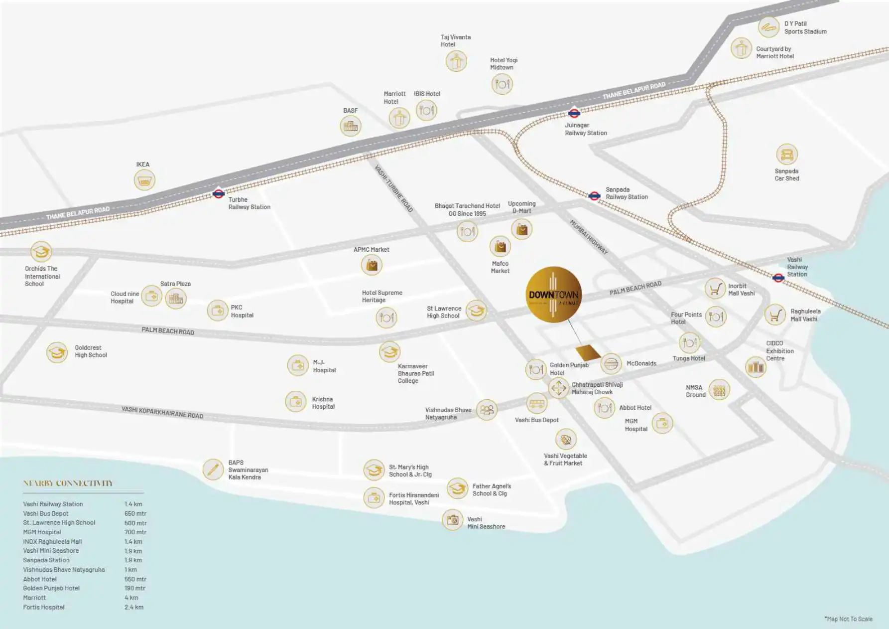 The locality offers a range of reputable educational institutions, including Ryan International School Vashi and St. Lawrence High School Vashi for schooling. For higher education, Karmaveer Bhaurao Patil College and ICFA are nearby. Healthcare needs are well-met by facilities like Neoalta Clinic and MGM Healthcare Vashi, ensuring comprehensive medical services and educational opportunities for residents of all ages.