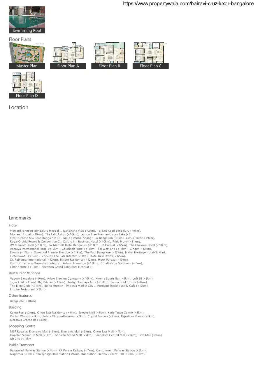 Bairavi Cruz Luxor by Bairavi Properties and Construction Pvt Ltd at the very prime location of Kalyan Nagar in Bangalore offers residential project that host 3 bhk and 4 bhk apartments in various sizes.