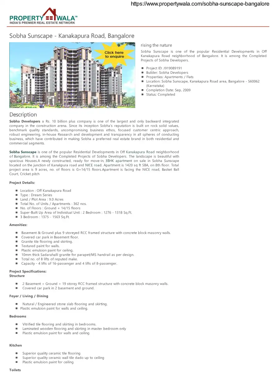 Sobha Sunscape is one of the popular Residential Developments in Off Kanakapura Road neighborhood of Bangalore. It is among the Completed Projects of Sobha Developers. The landscape is beautiful with spacious Houses.