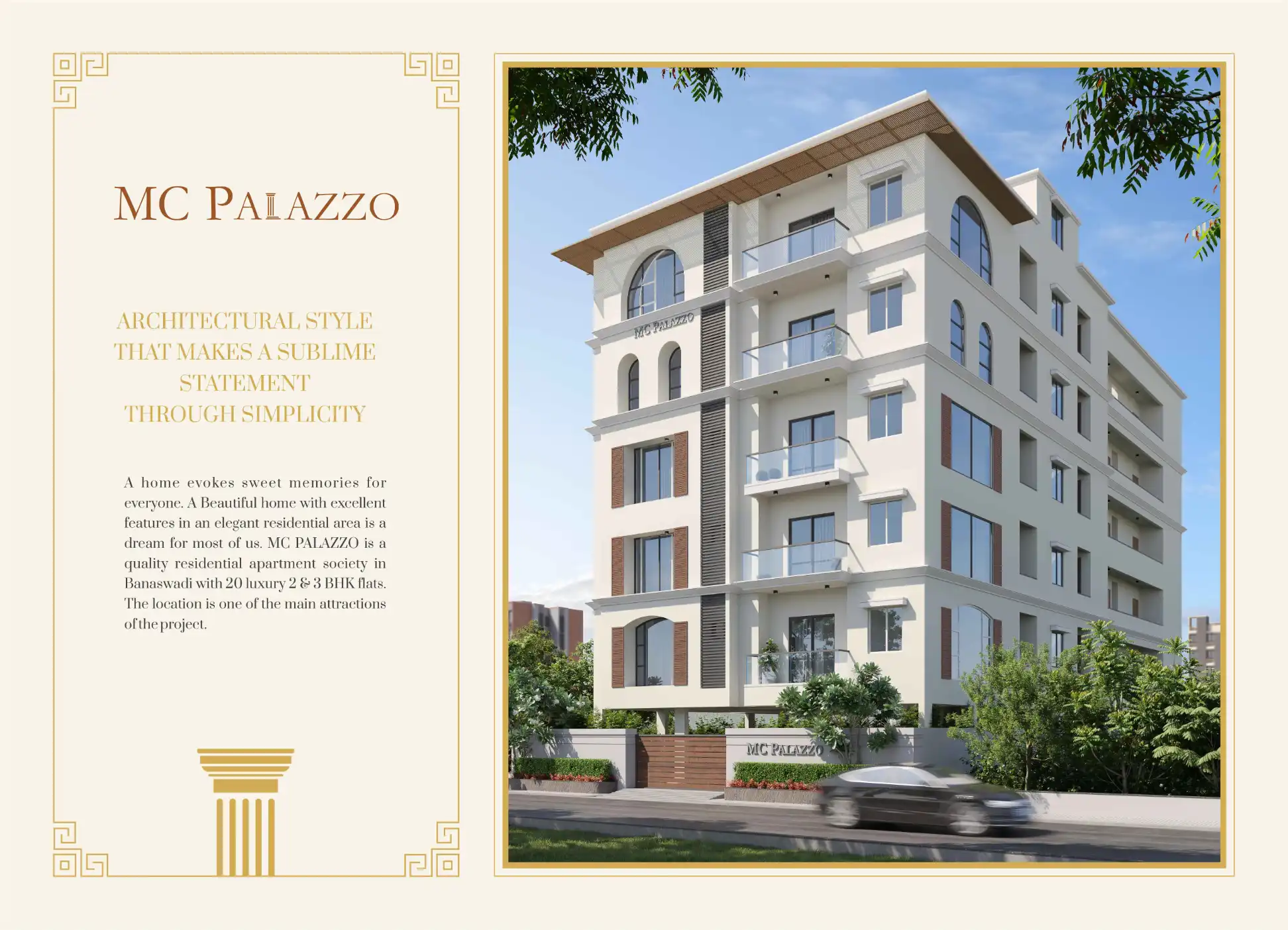 MC PALAZZO is a quality residential apartment society in Banaswadi with 20 luxury 2 & 3 BHK flats.