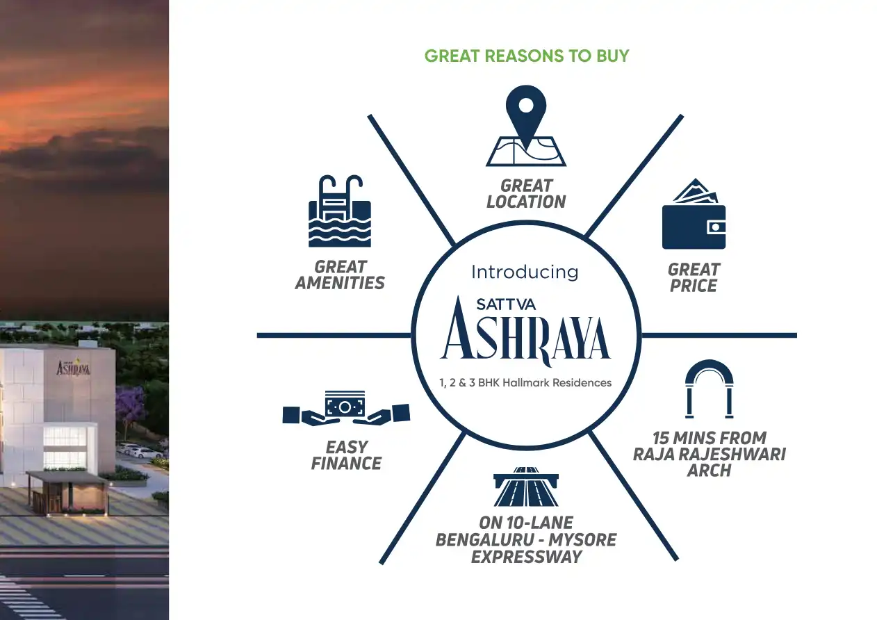 Sattva Ashraya is a housing project with 1, 2 & 3 BHK Hallmark Residences.