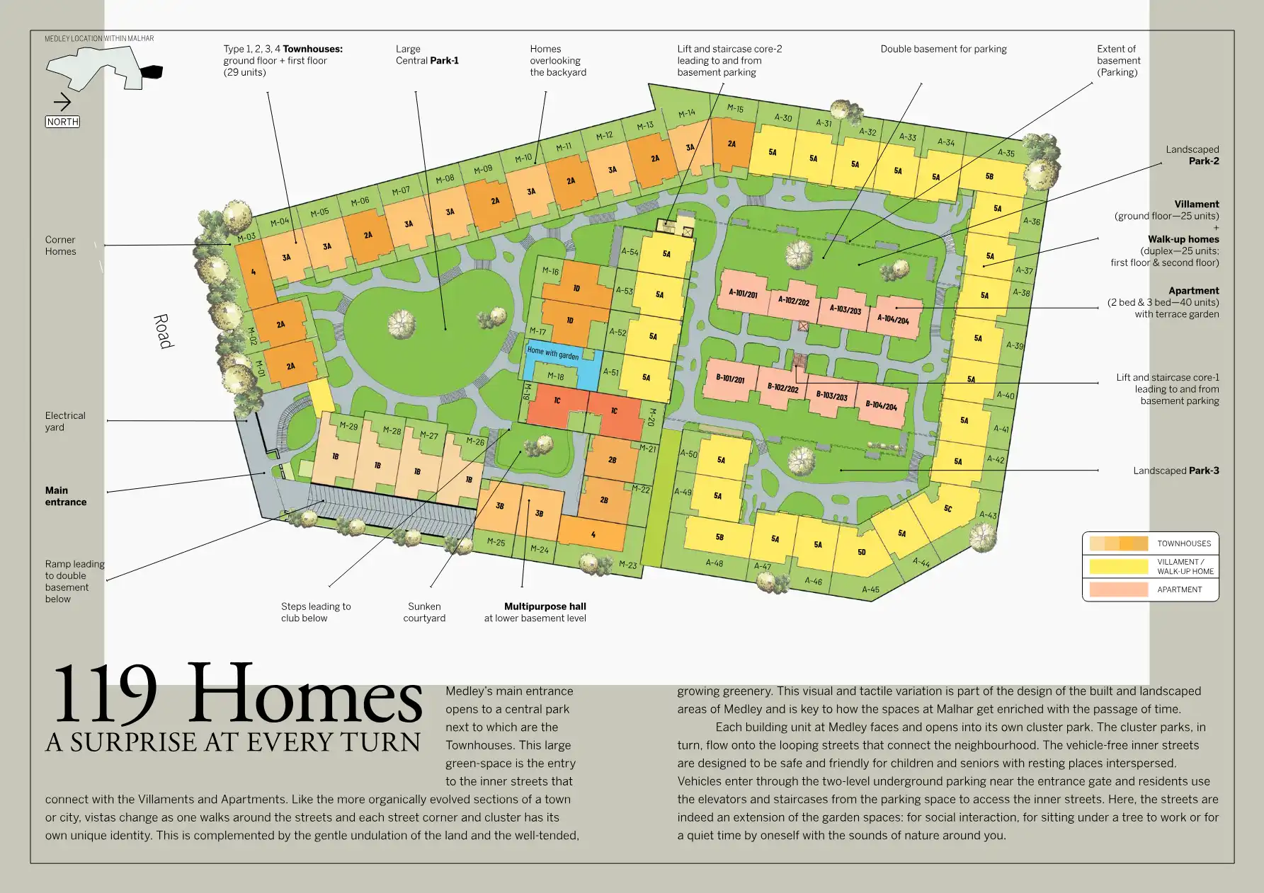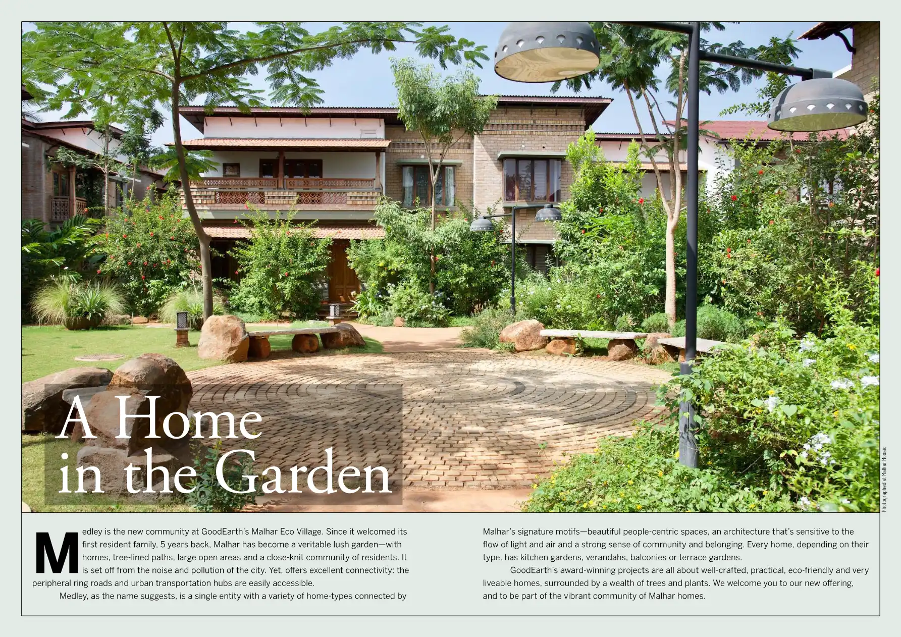 Medley is the new community at GoodEarth's Malhar Eco Village. Homes, parks and open spaces are often at gently different levels to provide a richer spatial experience. Plus, homes are set around cluster parks with meandering streets connecting the e...