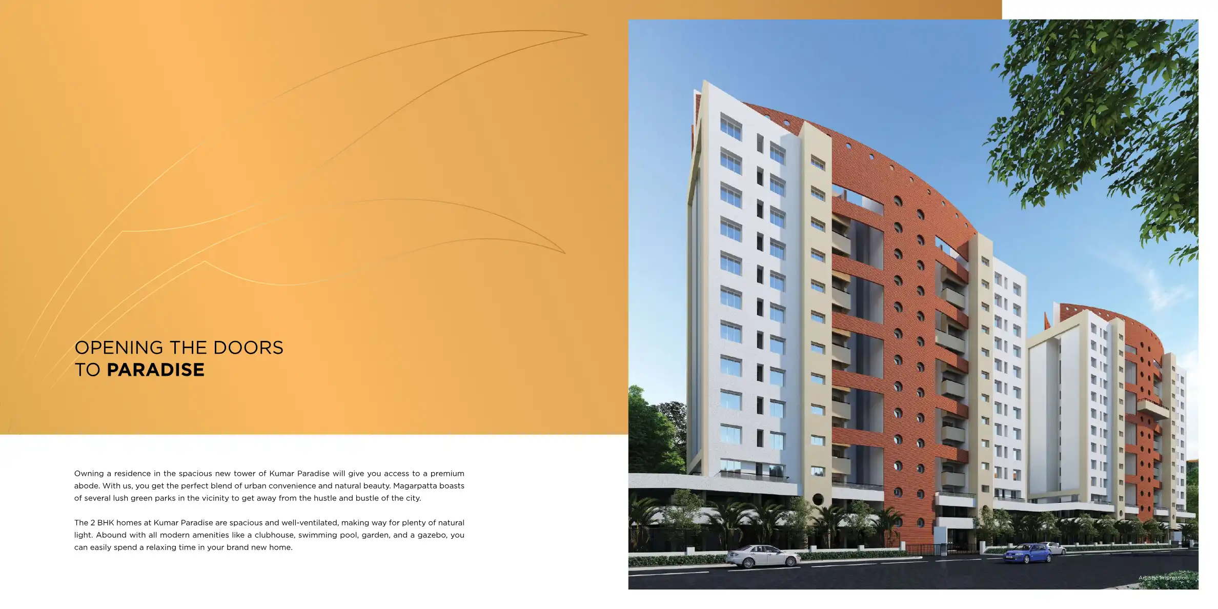 Kumar Paradise in Magarpatta offers premium 2 BHK homes blending urban convenience with natural beauty, featuring amenities like a clubhouse, swimming pool, garden, and gazebo.