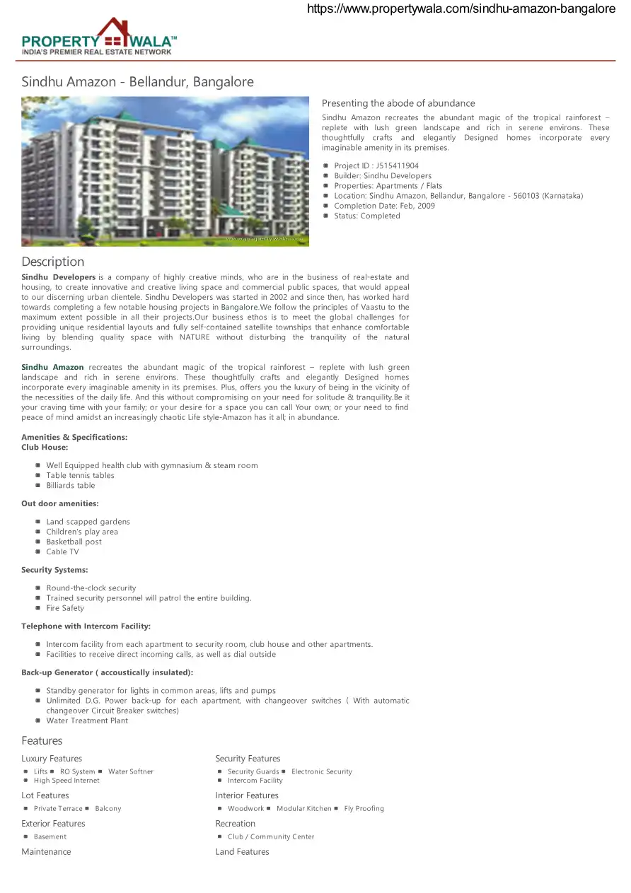 Sindhu Amazon recreates the abundant magic of the tropical rainforest replete with lush green landscape and rich in serene environs. These thoughtfully crafts and elegantly Designed homes incorporate every imaginable amenity in its premises.
