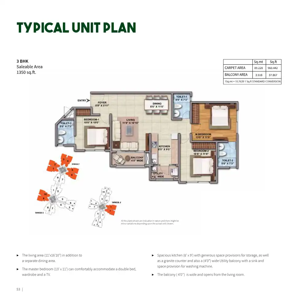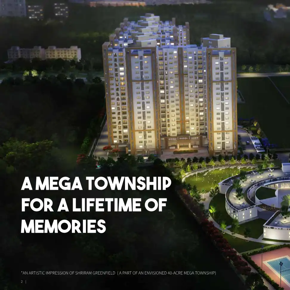 Shriram Greenfield, part of the 40-acre mega township is spread across 19.5 acres with 9 residential blocks and a sprawling 4.5 acre recreation area. It has over 76% green spaces