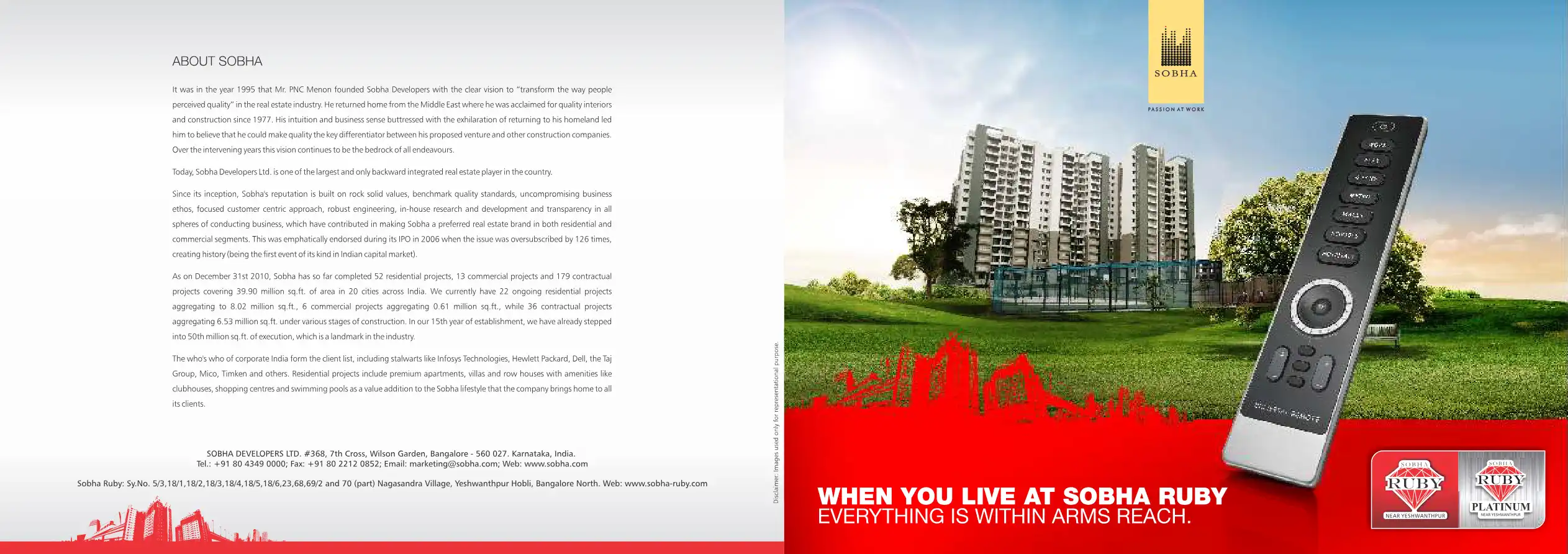 Sobha Ruby and Sobha Ruby Platinum are luxury apartments spread across 21 acres of green pastures located in the heart of West Bangalore.