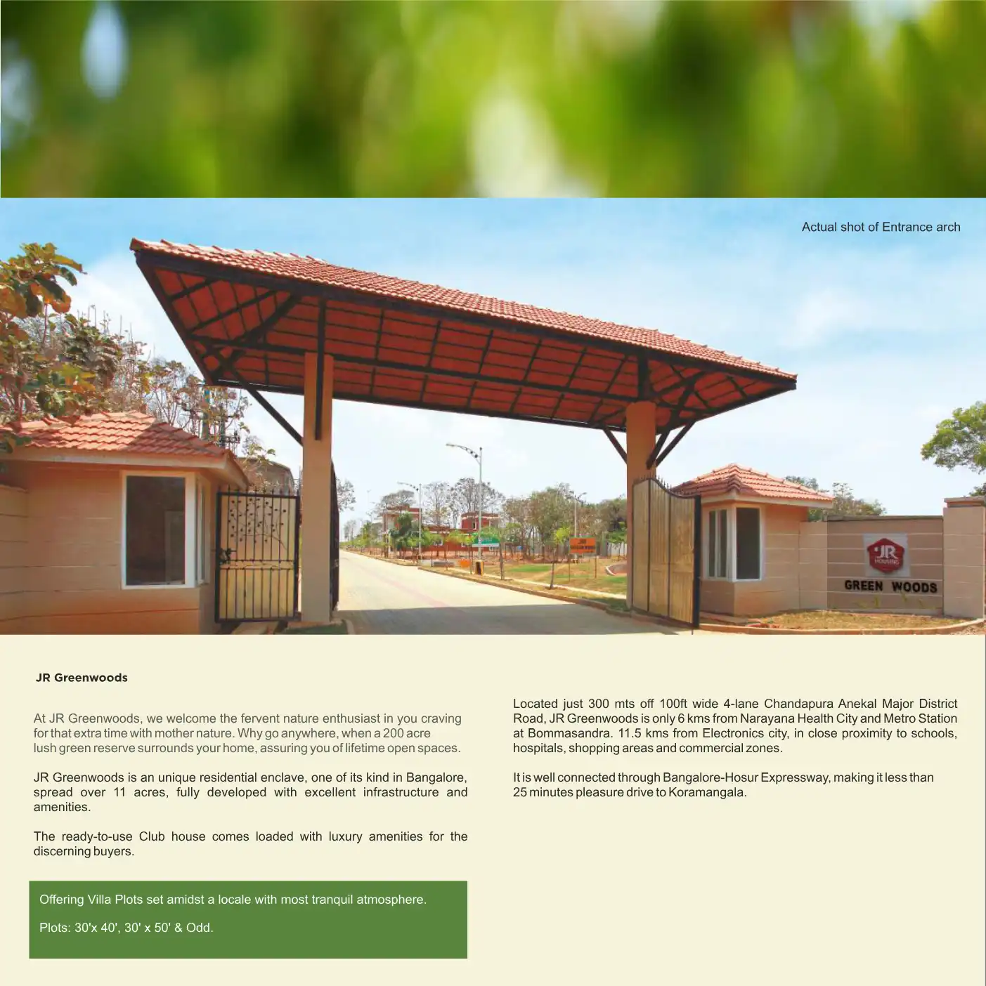 JR Greenwoods is an unique residential enclave, one of its kind in Bangalore, spread over 11 acres, fully developed with excellent infrastructure and amenities.