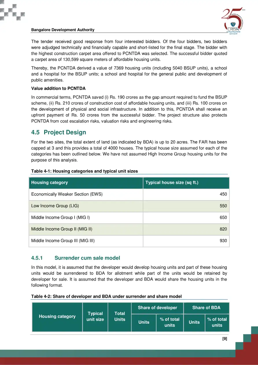 The project aims at developing affordable housing units on a sale basis to be allotted by BDA.