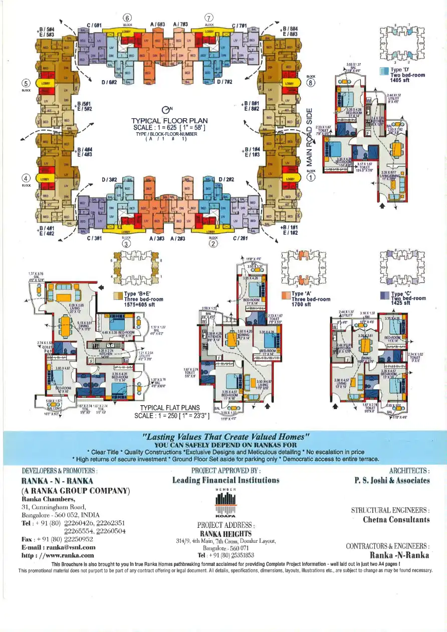 Ranka Heights comprises Nine residential floors and three generous levels of Covered Parking. Each flat comes with Membership Privileges to a full fledged International Class Club House spread across over 18,000 sft of built-up area.