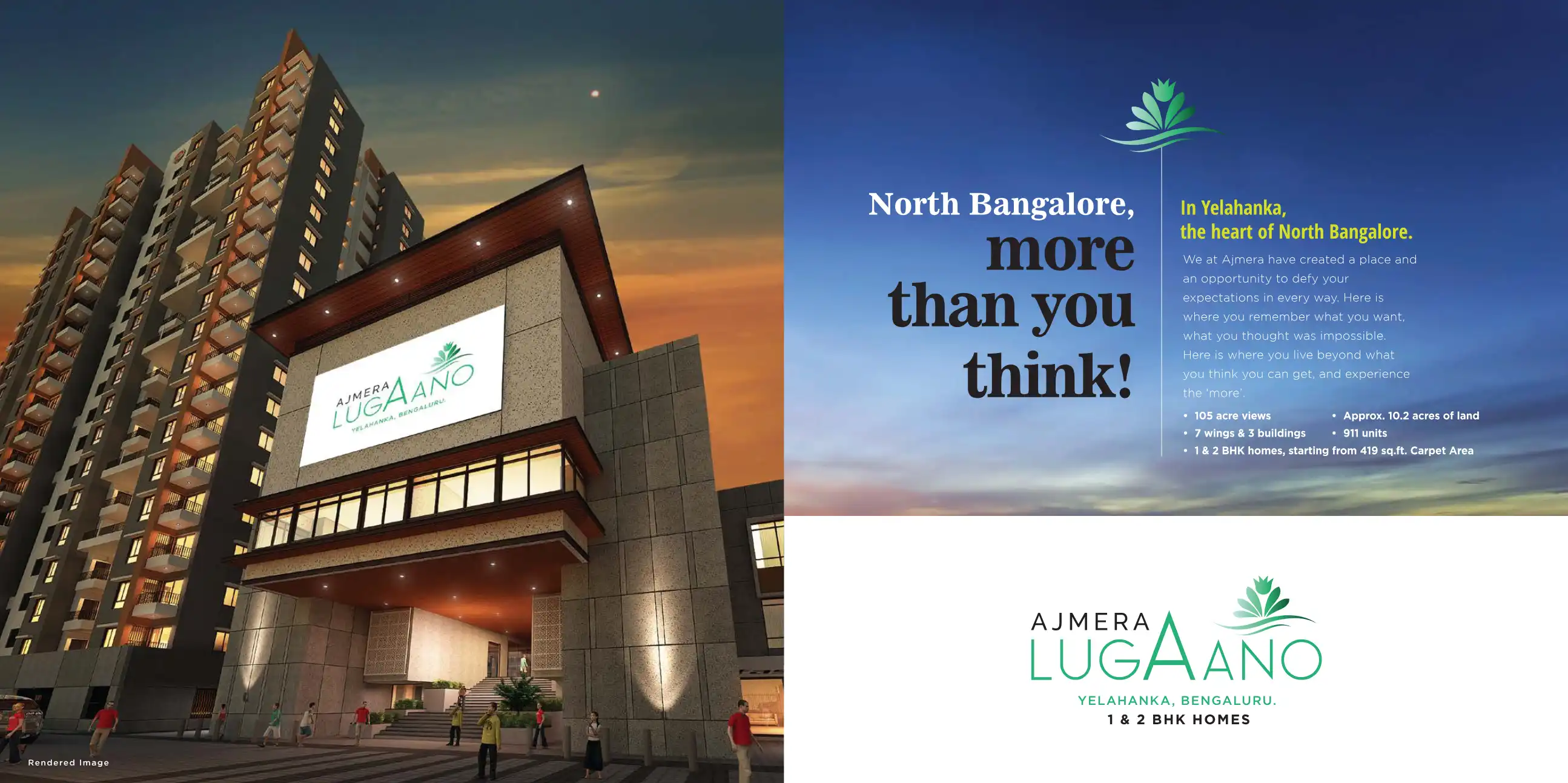 Ajmera Lugaano, an embellished oasis in Yelahanka, where life's desire is not just met but exceeded. Our stunning 1 & 2 bed residences are an exceptional blend of natural living and urban conveniences, in a neighbourhood where all your desires are at...