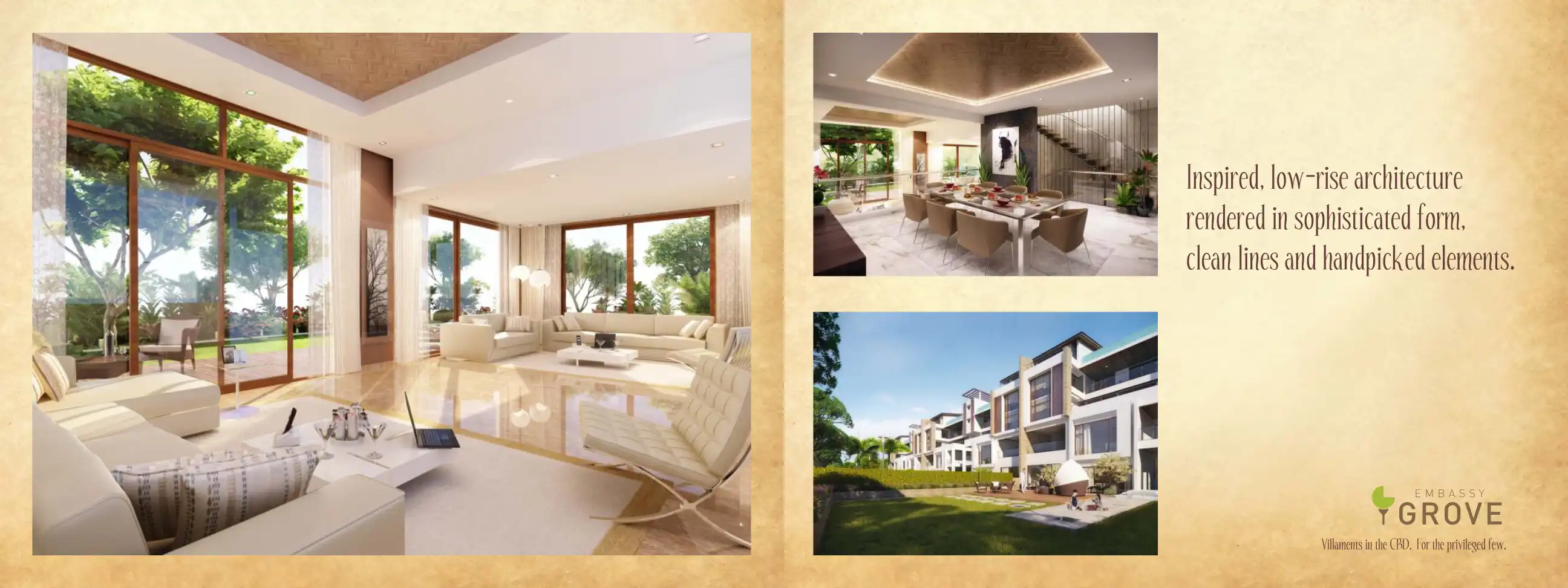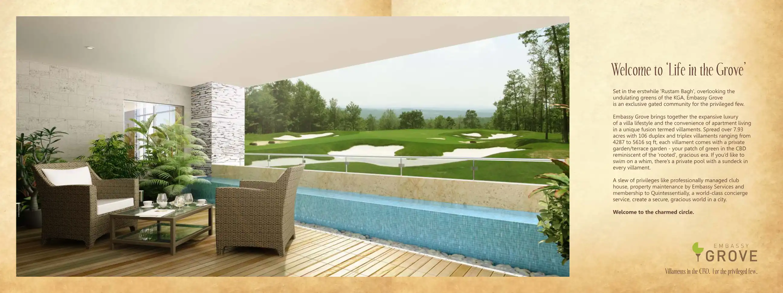 Embassy Grove brings together the expansive luxury of a villa lifestyle and the convenience of apartment living in a unique fusion termed villaments. Spread over 7.93 acres with 106 duplex and triplex villaments ranging from 4287 to 5616 sq ft, each ...