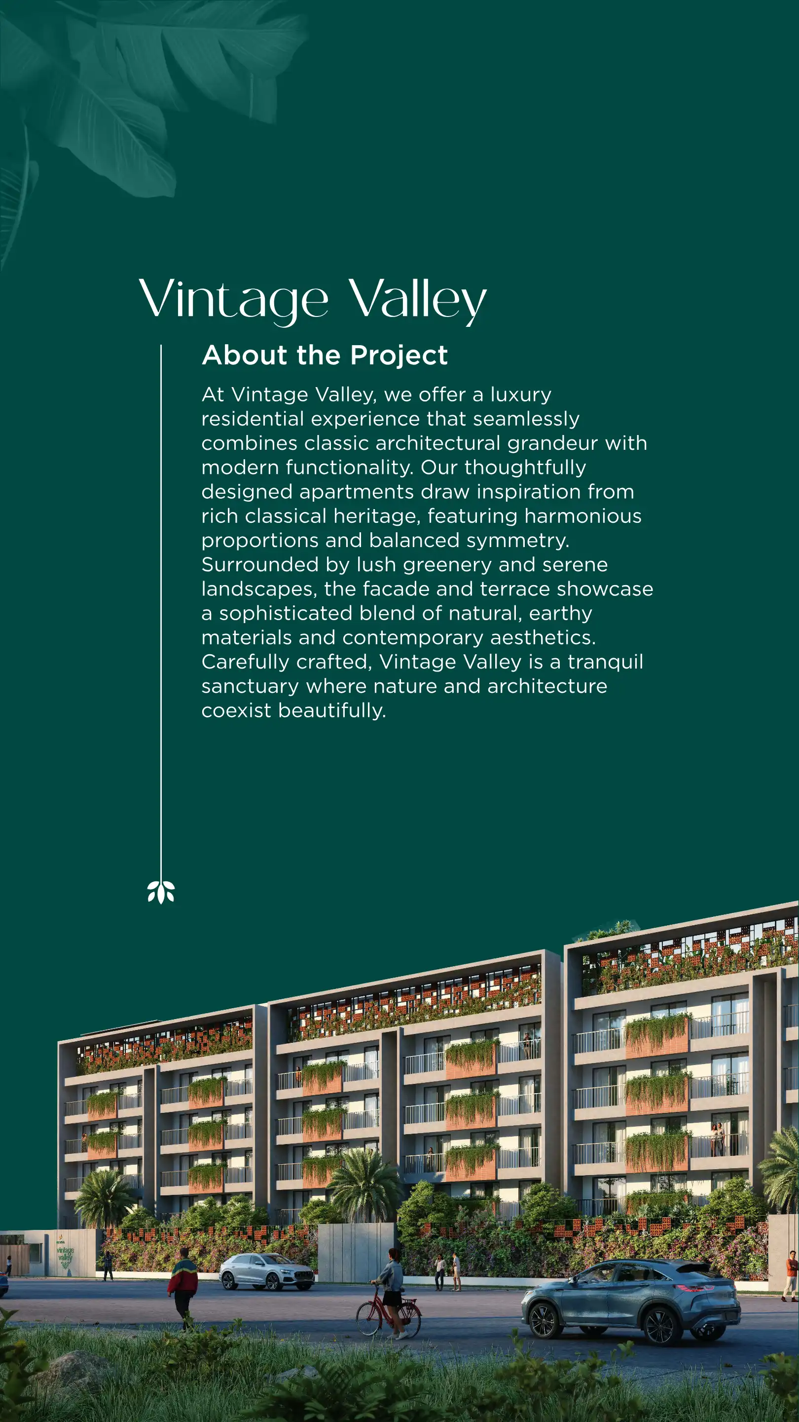 At Vintage Valley, we offer a luxury residential experience that seamlessly combines classic architectural grandeur with modern functionality. Our thoughtfully designed apartments draw inspiration from rich classical heritage, featuring harmonious pr...