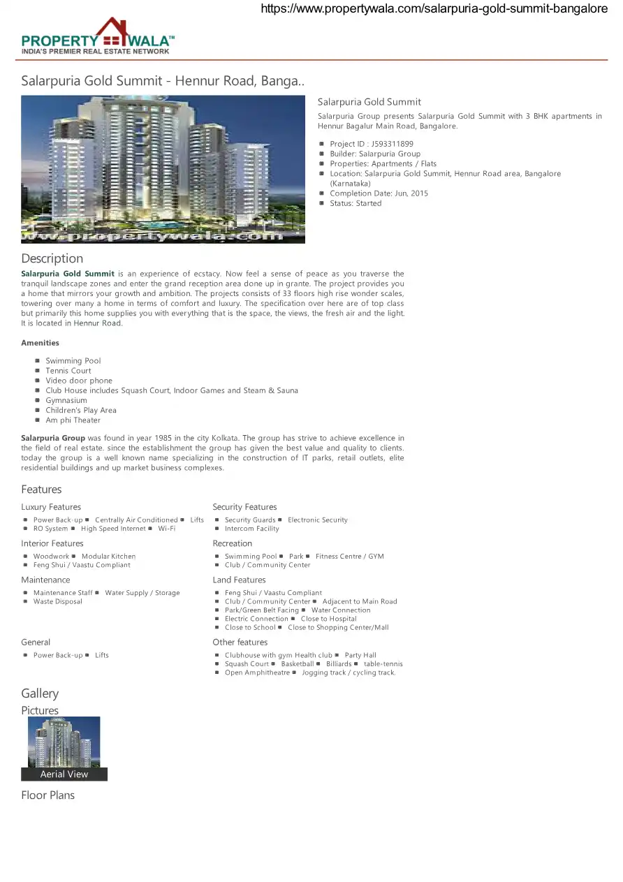 Salarpuria Gold Summit is an experience of ecstacy. Now feel a sense of peace as you traverse the tranquil landscape zones and enter the grand reception area done up in grante. The project provides you a home that mirrors your growth and ambition. Th...