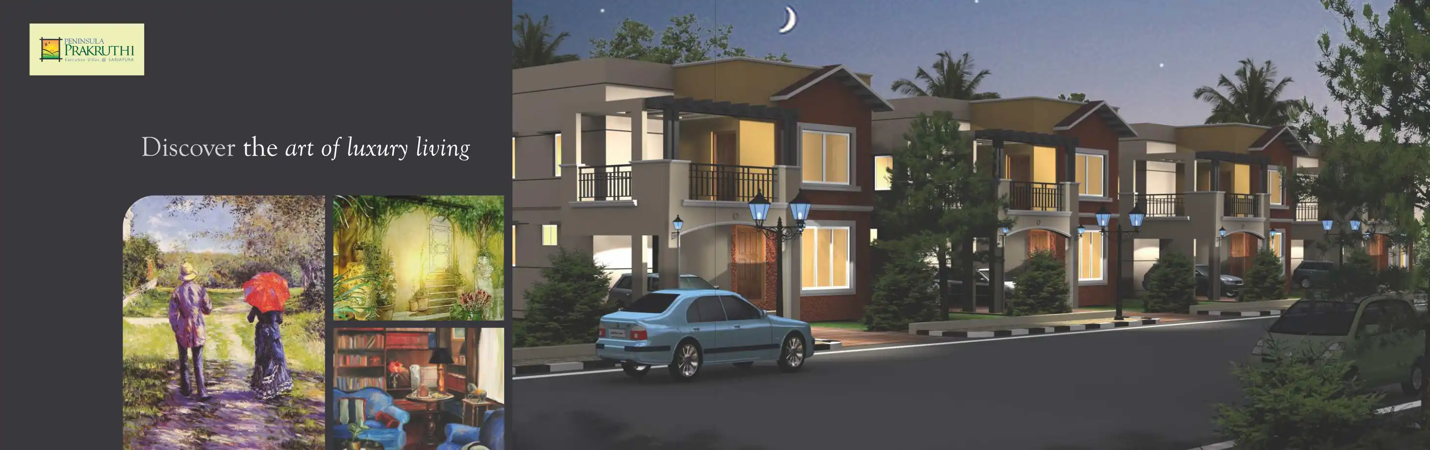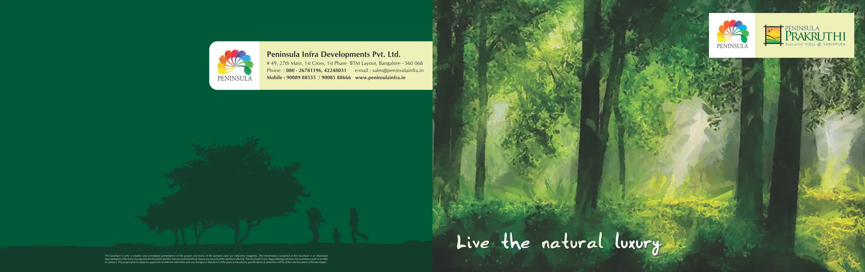 Peninsula Prakruthi - an exclusive gated community, secure, impeccably planned executive villa project in Sarjapur, Bangalore. Consisting of luxurious villas with the finest textures and finishes. Each enclave follows the style, colour palette and pr...