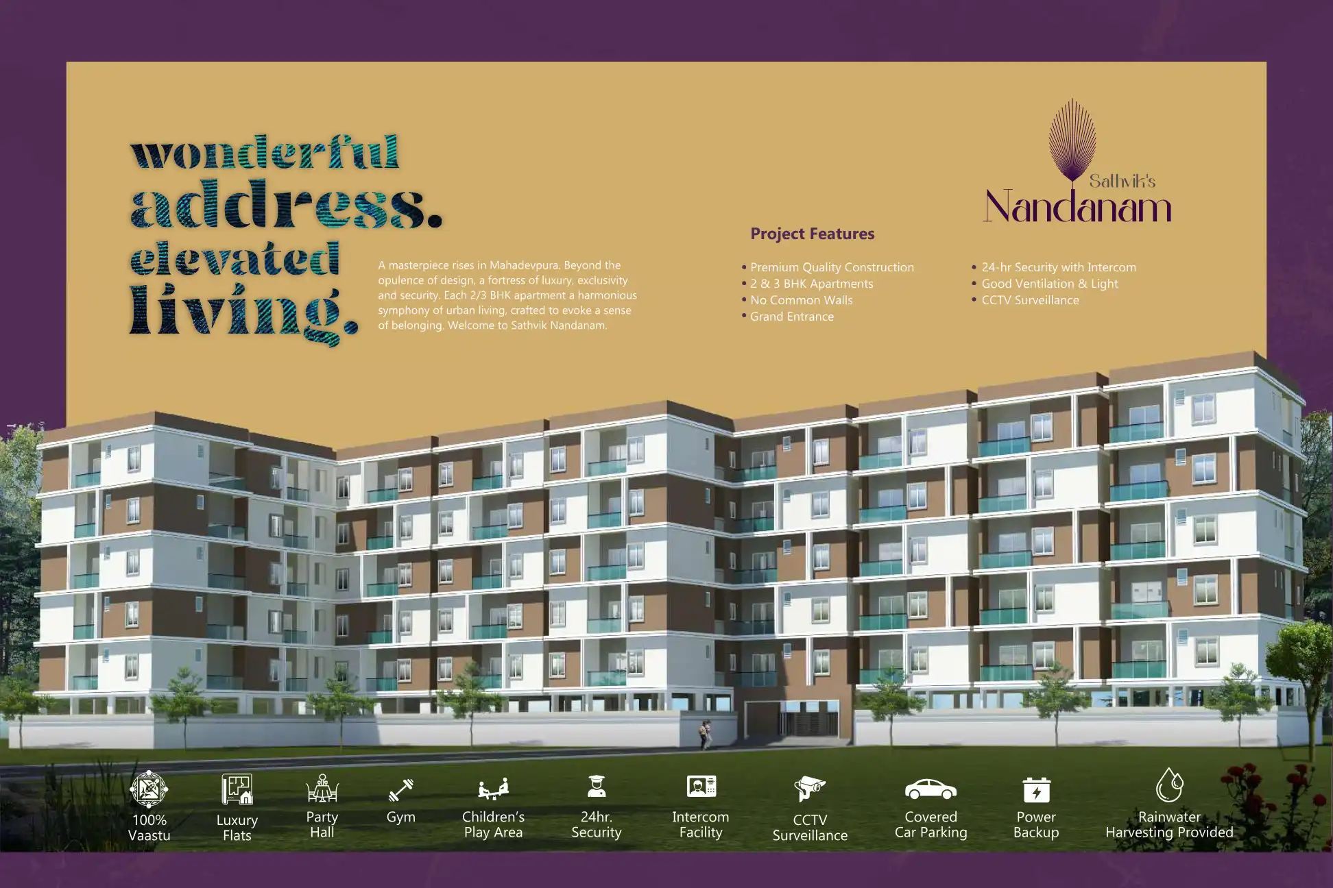 A masterpiece rises in Mahadevpura. Beyond the opulence of design, a fortress of luxury, exclusivity and security. Each 2/3 BHK apartment a harmonious symphony of urban living, crafted to evoke a sense of belonging.