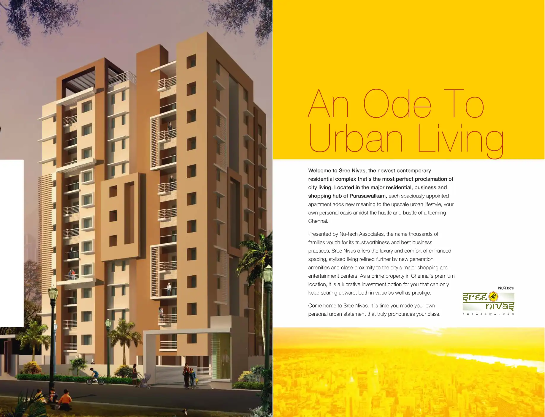 Welcome to Sree Nivas, the newest contemporary residential complex that's the most perfect proclamation of city living. Located in the major residential, business and shopping hub of Purasawalkam, each spaciously appointed apartment adds new meaning ...