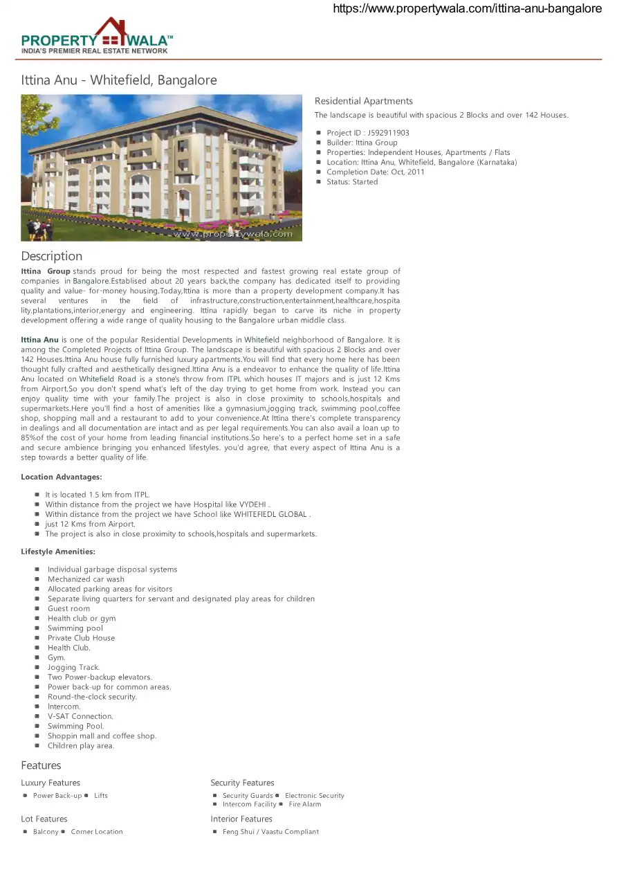 Ittina Anu is one of the popular Residential Developments in Whitefield neighborhood of Bangalore. It is among the Completed Projects of Ittina Group. The landscape is beautiful with spacious 2 Blocks and over 142 Houses.Ittina Anu house fully furnis...
