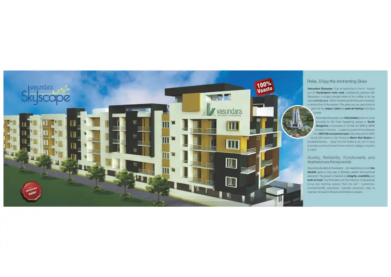 Vasundara Skyscape, Truly an experience to live in located just off Kanakapura main road, aesthetically planned with Skyscapes, a unique concept where in the rooftop is an top class amenity area. All the recreational facilities are embedded in terrac...