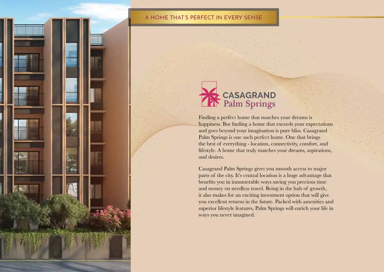 Casagrand Palm Springs is one such perfect home. One that brings the best of everything - location, connectivity, comfort, and lifestyle. A home that truly matches your dreams, aspirations, and desires.