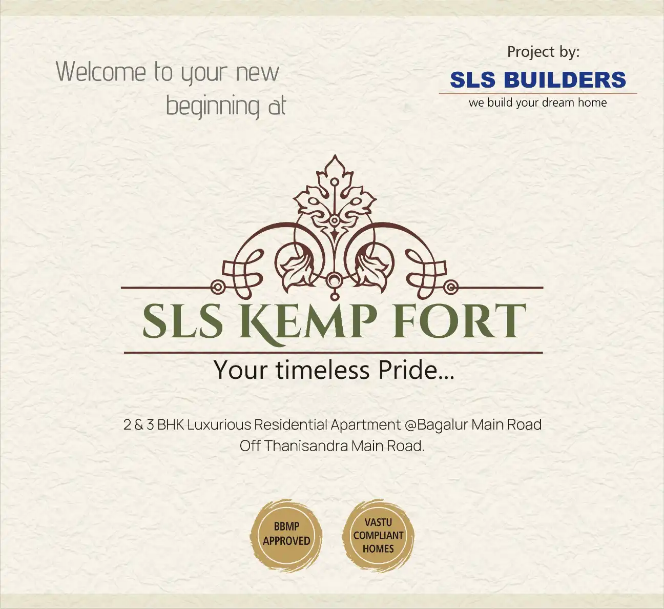 2 & 3 BHK Luxurious Residential Apartment @Bagalur Main Road Off Thanisandra Main Road.