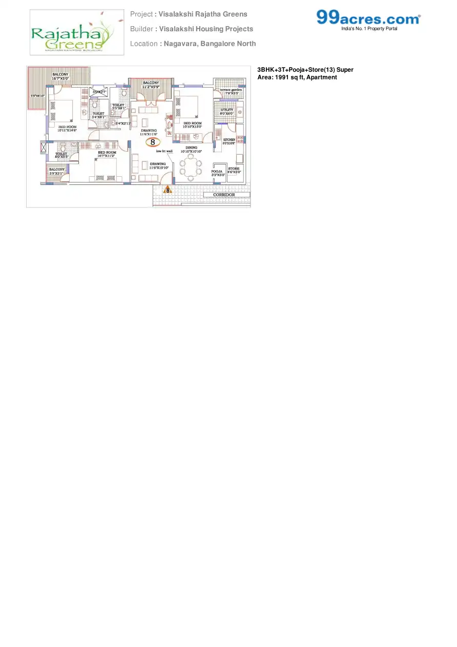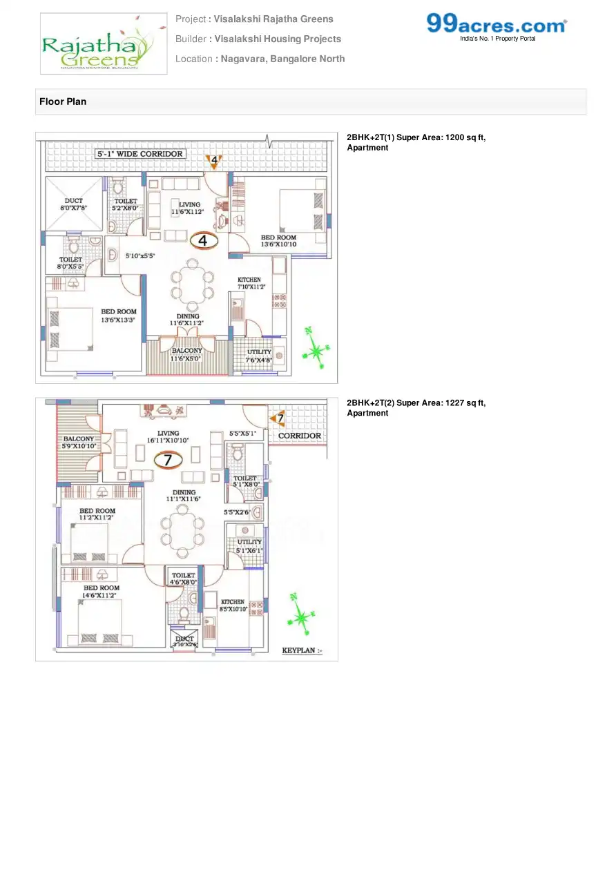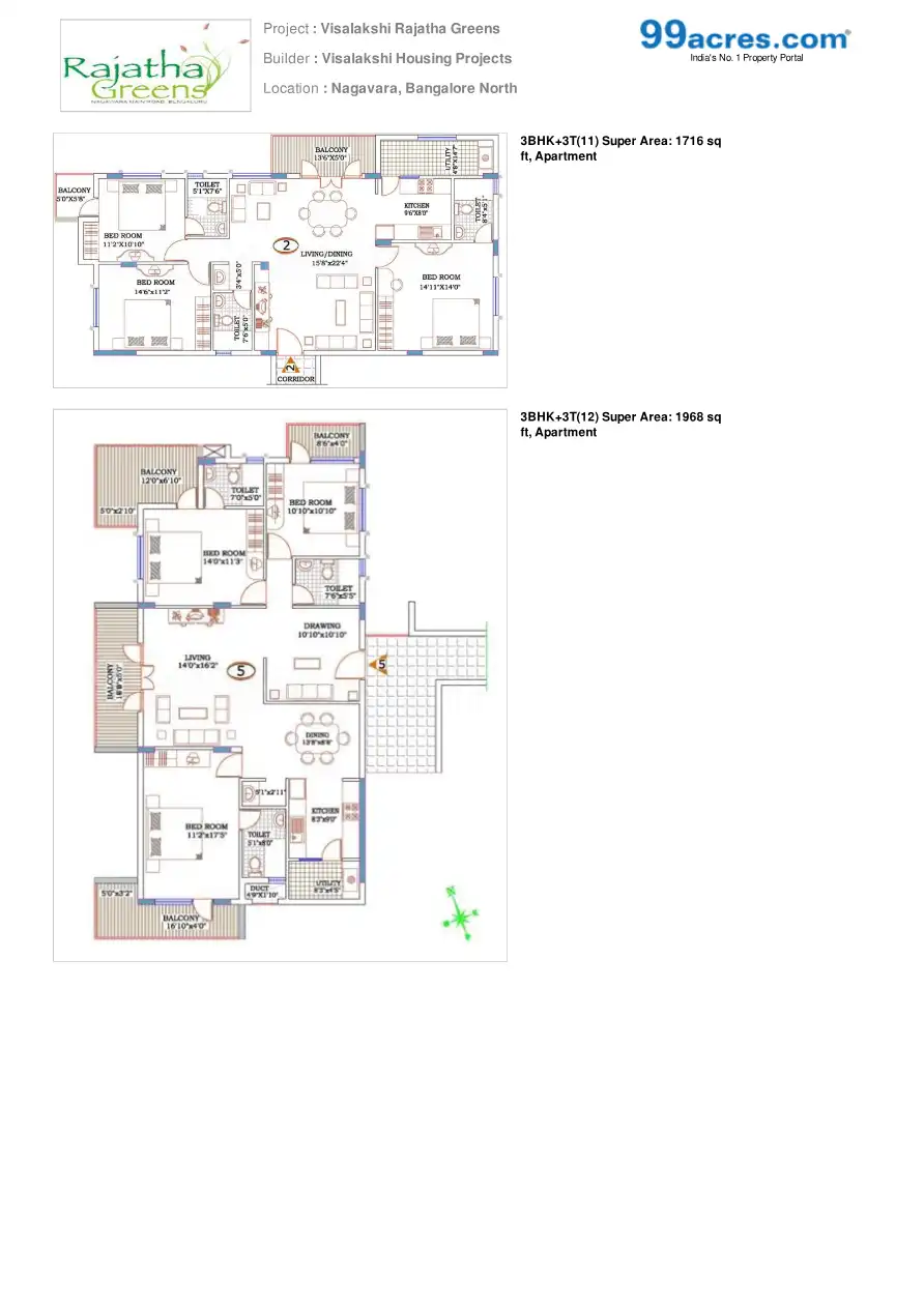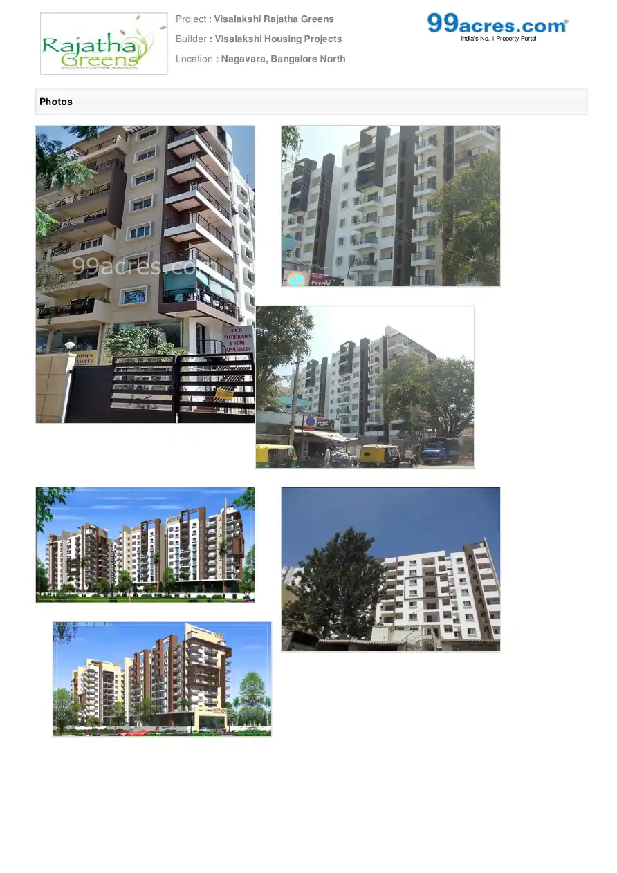 Visalakshi Rajatha Greens is one of the residential cum commercial developments by Visalakshi Housing Projects, located in Bangalore. The project offers 2BHK and 3BHK flats at very competitive and affordable price. It is well planned and is built wit...