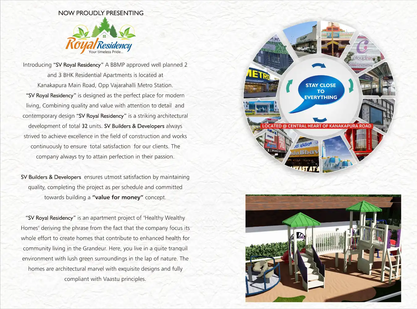 Introducing “SV Royal Residency” A BBMP approved well planned 2 and 3 BHK Residential Apartments is located at Kanakapura Main Road, Opp Vajarahalli Metro Station. "SV Royal Residency” is designed as the perfect place for modern living, Combining qua...