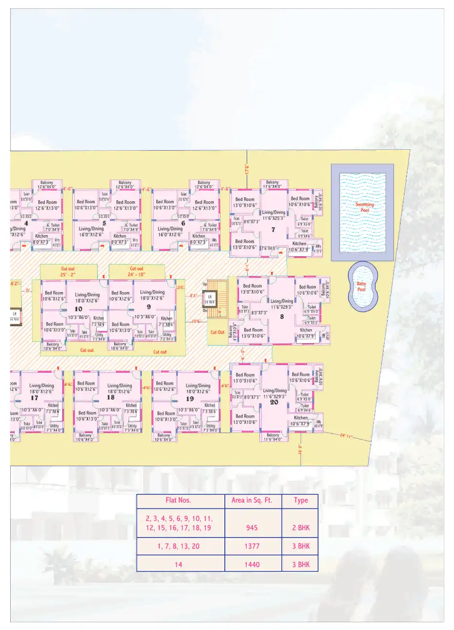 No common walls. Self-contained apartments with the feel of independent houses.Consists of 100 apartments with a 4.5 ft space separates each apartment on two sides with more than 16 ft open space at the rear of each apartment block. This allows for a...