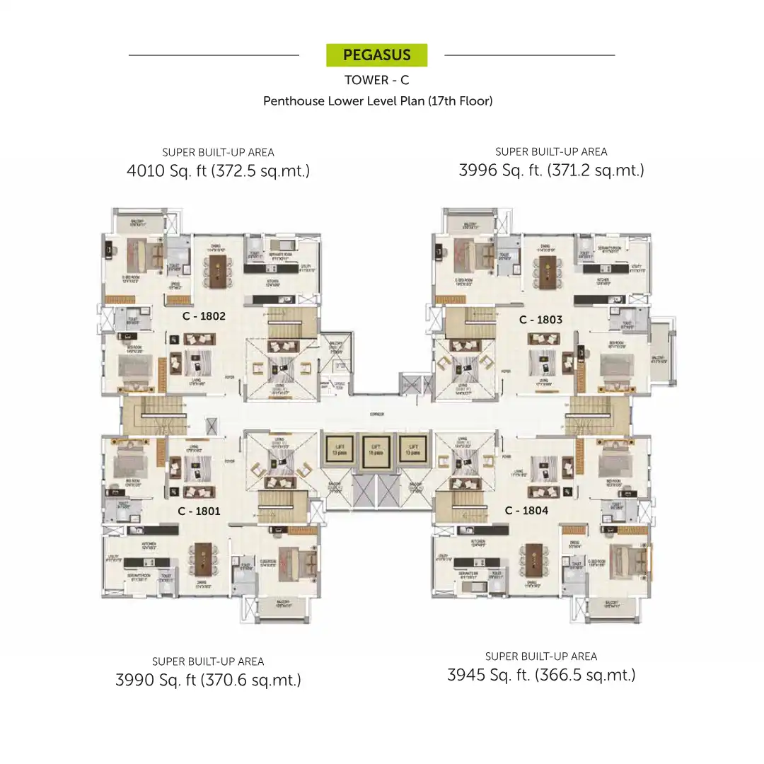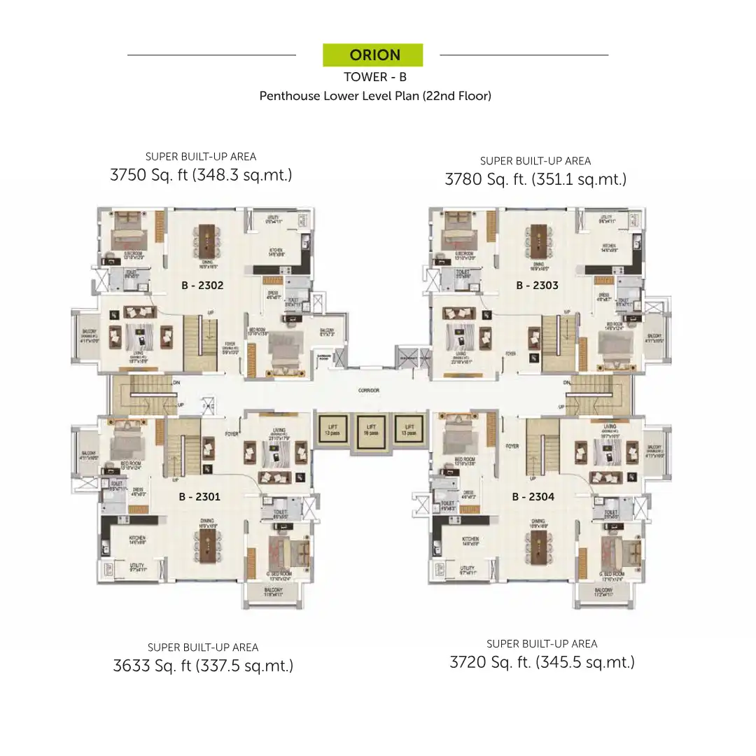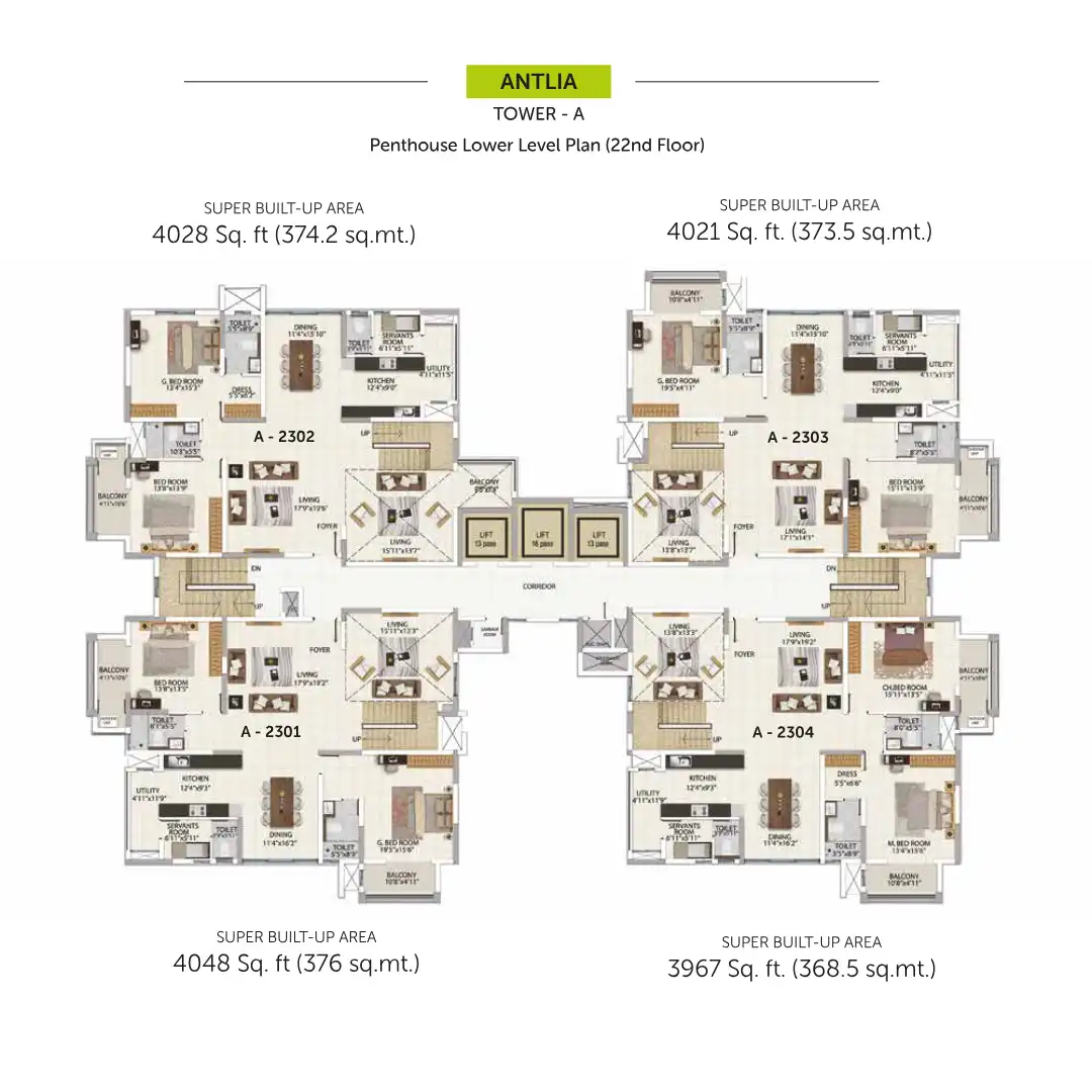 Salarpuria Sattva Magnificia offers a fine selection of 3 bedroom apartments 4BHK Duplexes and Penthouses with floor spaces ranging between 2266 sft. to 4050 sft.