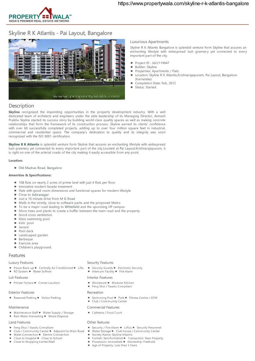Skyline R K Atlantis Bangalore is splendid venture form Skyline that assures an enchanting lifestyle with widespread lush greenery yet connected to every important part of the city. Located at Pai Layout, Krishnarajapuram, it is right on one of the a...