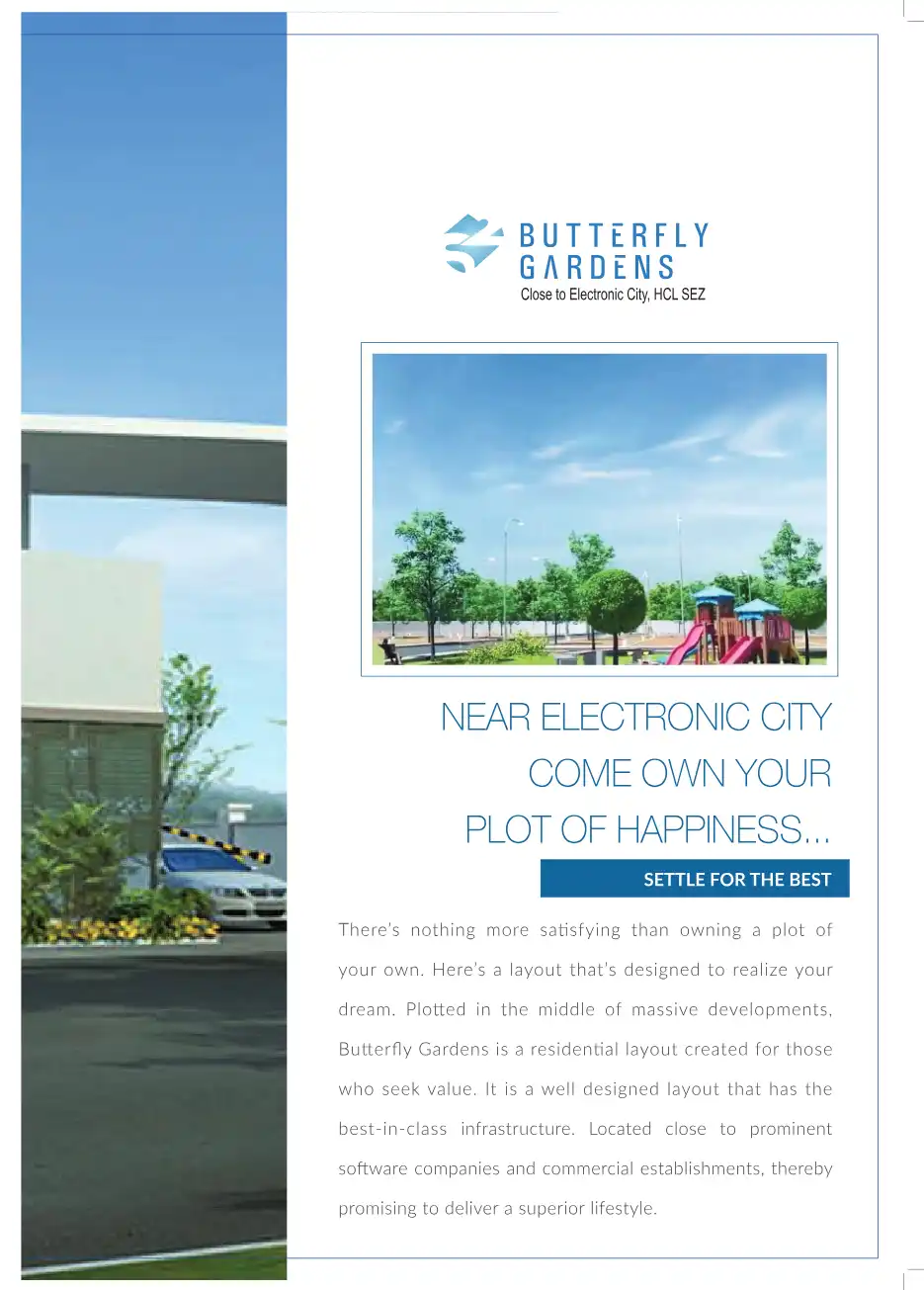 Butterfly Gardens is a residential layout created for those who seek value. It is a well designed layout that has the best-in-class infrastructure. Located close to prominent software companies and commercial establishments, thereby promising to deli...