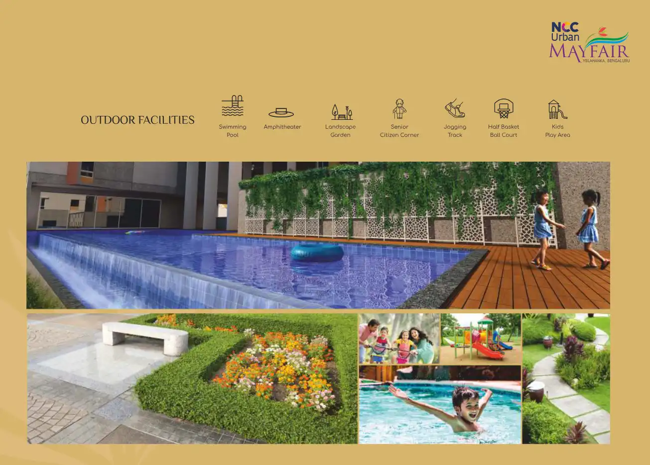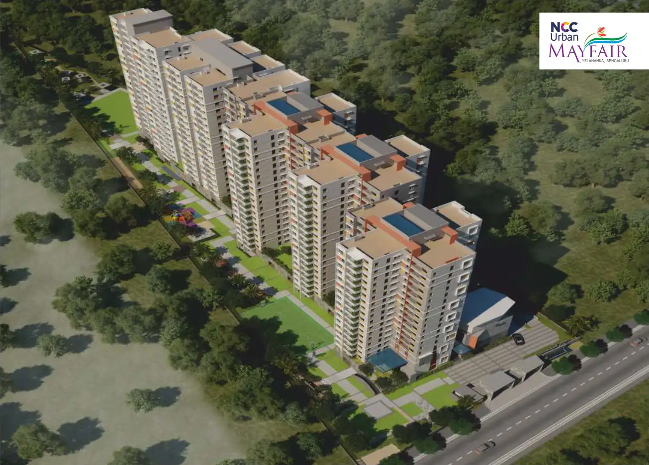 NCC URBAN MAYFAIR, Yelahanka. In the centre of North Bangalore is this island of calm. Offering 2 & 3 BHK apartments, complete with amenities and recreation of international standards.