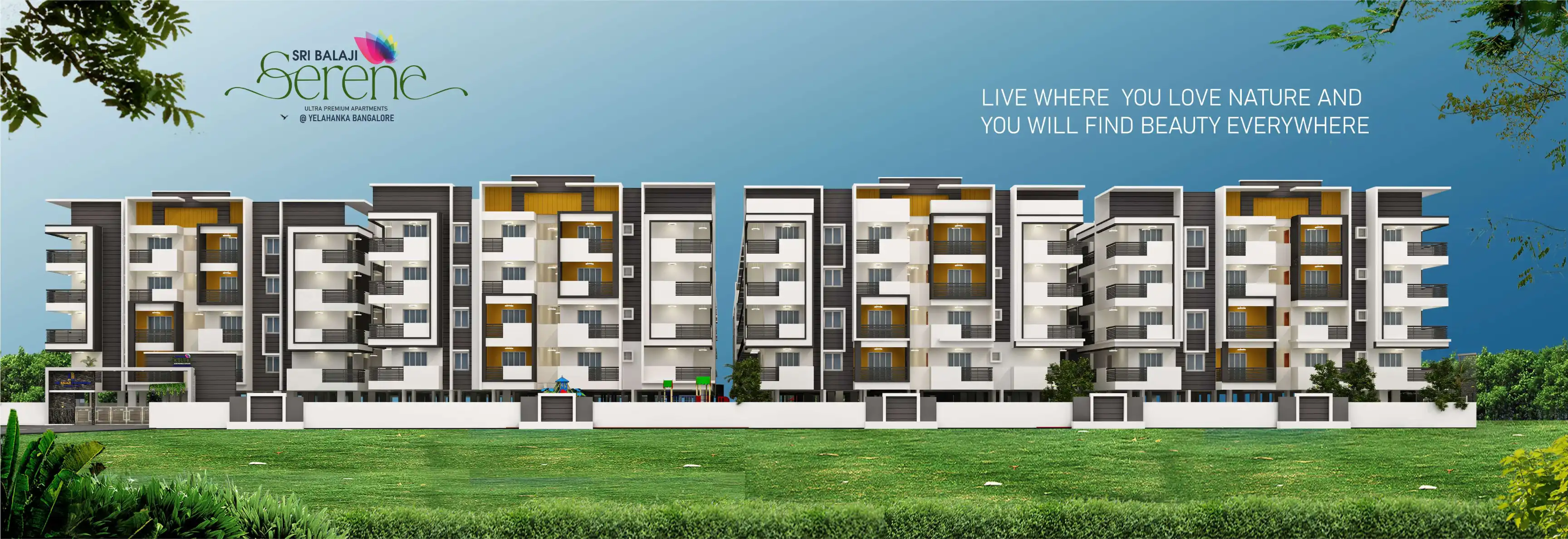 Sri Balaji Serene is a RERA registered project located in Yelahanka, Bangalore. It offers 2 & 3 BHK spacious units with premium gated community. The project has 376 luxury families and 40+ amenities.