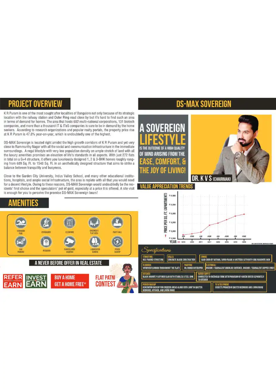 DS-MAX Sovereign is located right amidst the high growth corridors of KR Puram and yet very close to Rammurthy Nagar with all the social and communication infrastructure in the immediate surroundings. A regal lifestyle with very low population densit...