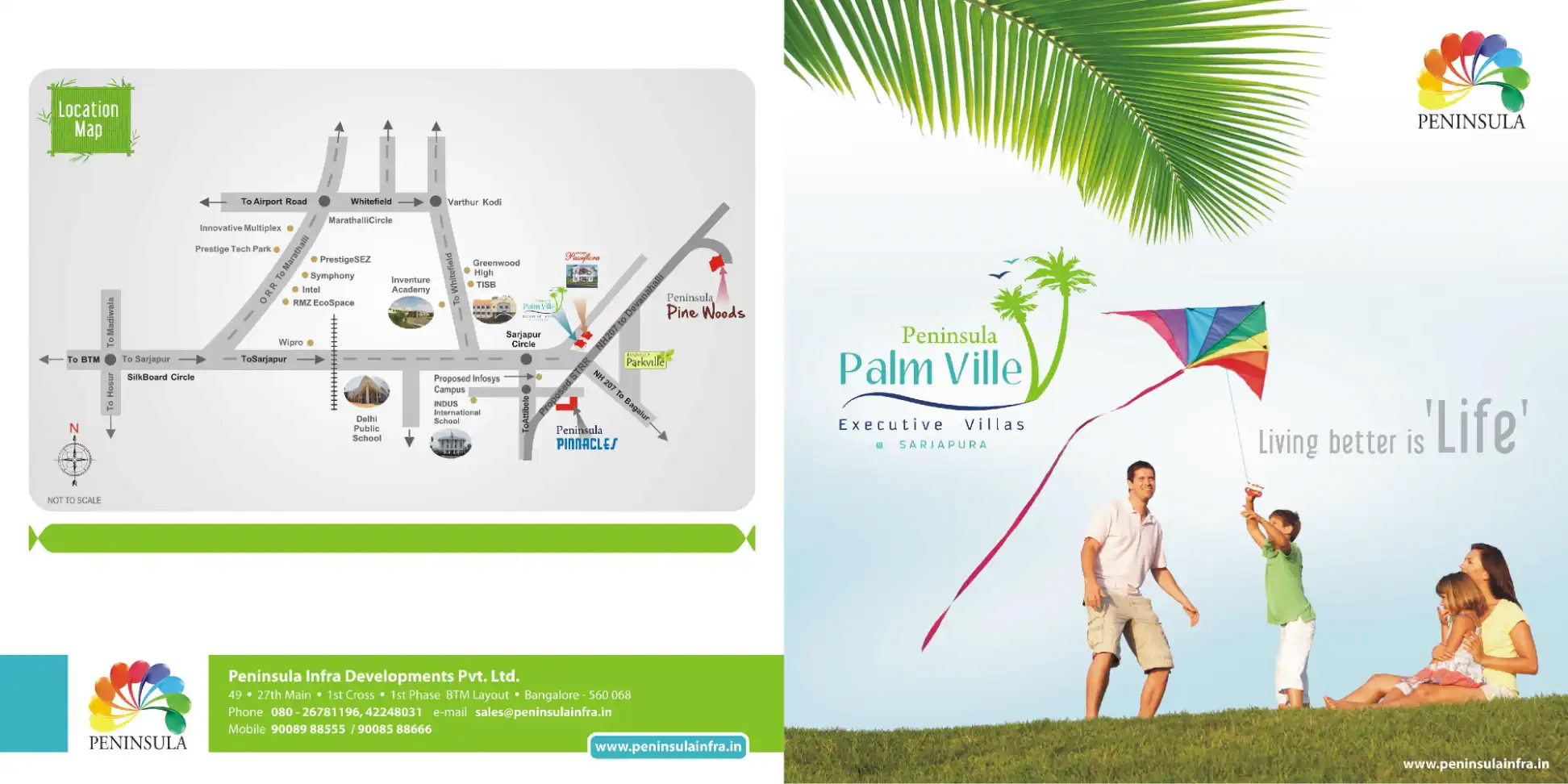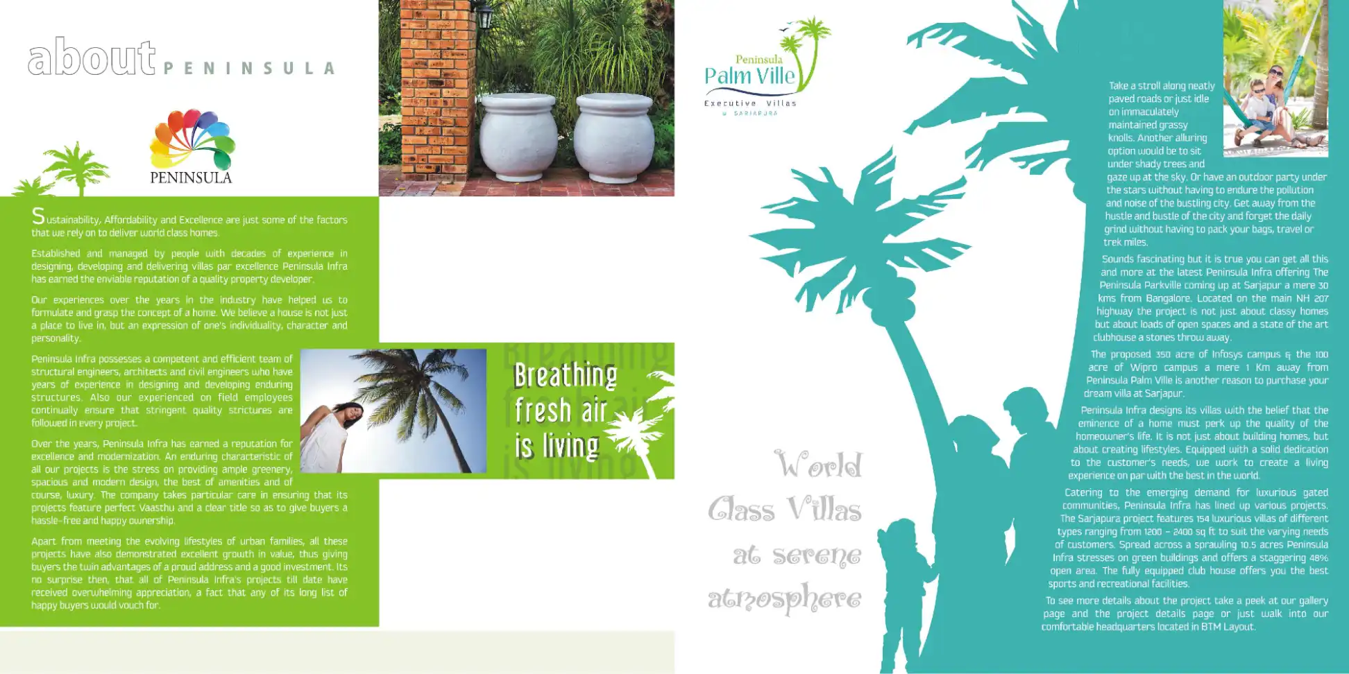 World Class Villas at serene atmosphere. The Sarjapura project features 154 luxurious villas of different types ranging from 1200 - 2400 sq ft to suit the varying needs of customers. Spread across a sprawling 10.5 acres Peninsula Infra stresses on gr...