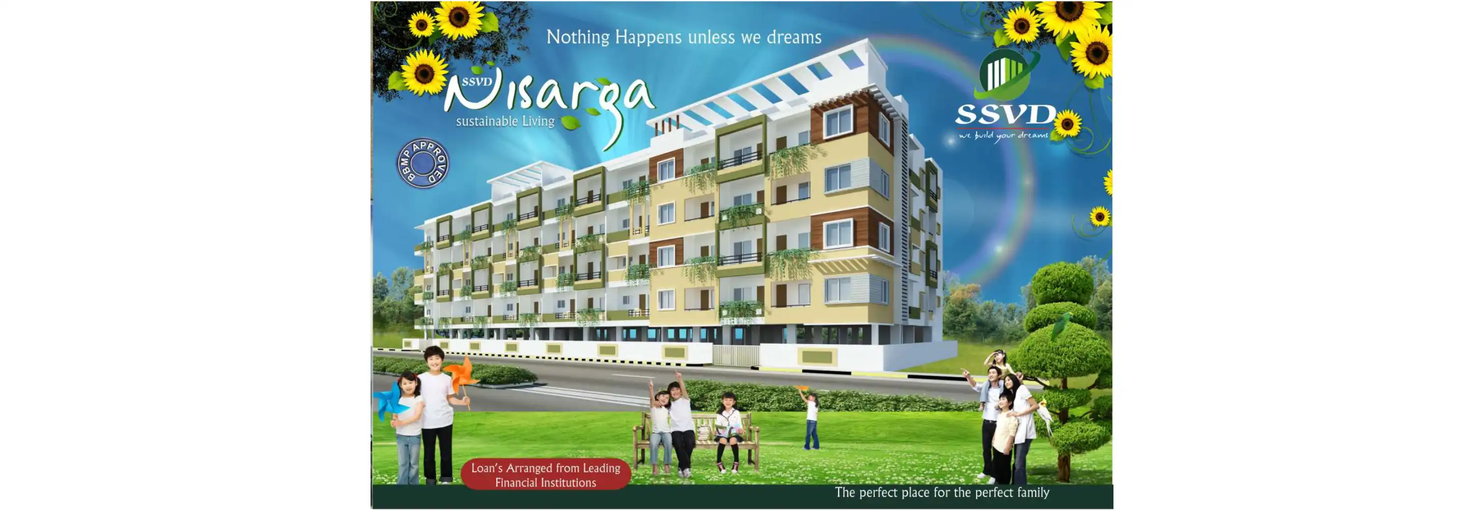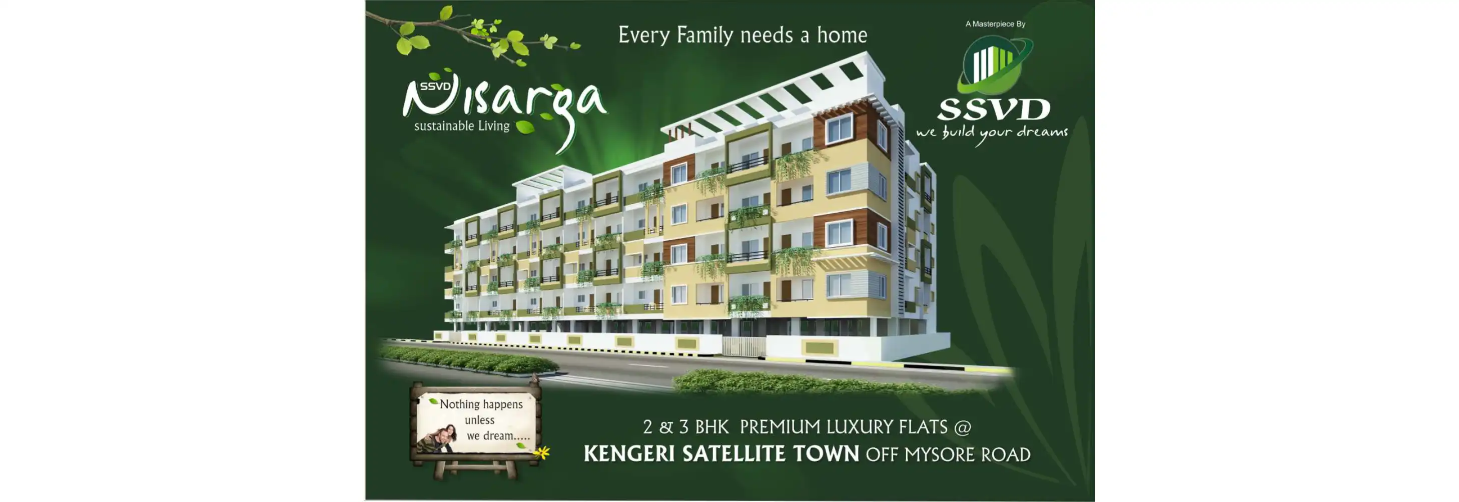 SSVD NISARGA A BBMP approved 2 & 3 BHK residential apartments is located in Kengeri Satellite Town off Mysore road, was designed as the perfect place for modern living, combining quality and value with attention to detail and contemporary design.