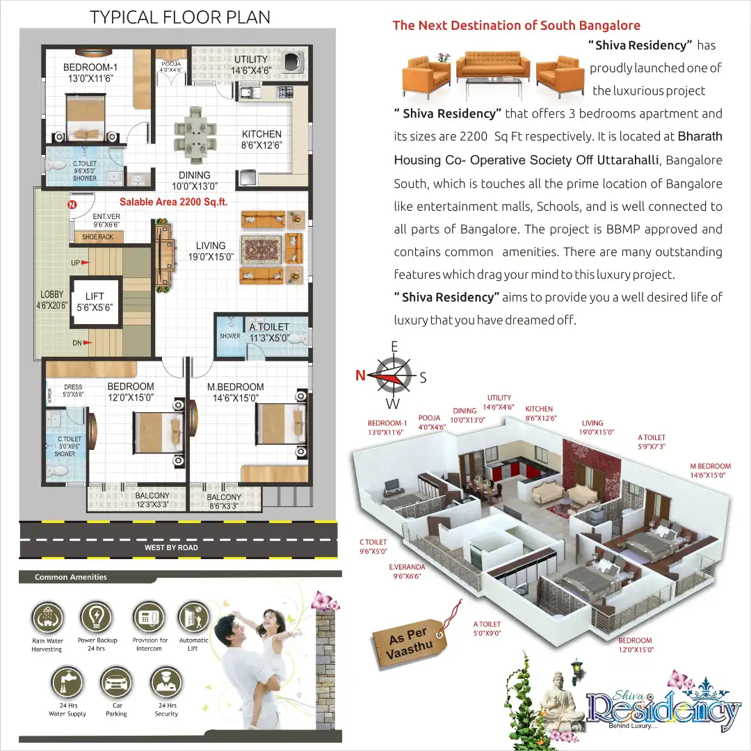 “Shiva Residency” that offers 3 bedrooms apartment and its sizes are 2200 Sq Ft respectively. It is located at Bharath Housing Co- Operative Society Off Uttarahalli, Bangalore South, which is touches all the prime location of Bangalore like entertain...
