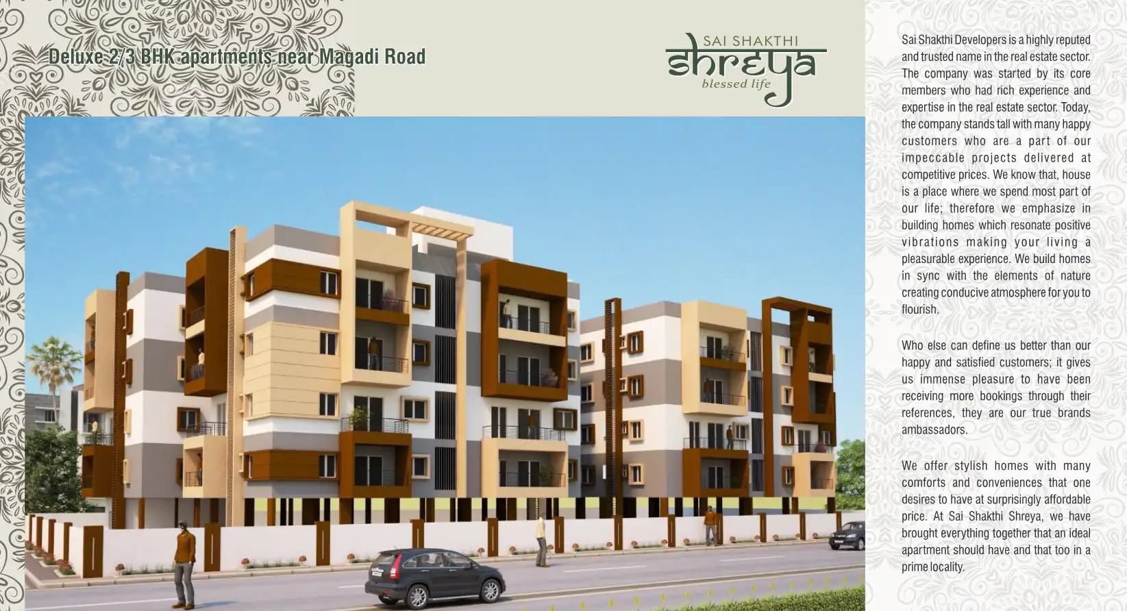 Sai Shakthi Shreya offers you this great opportunity to own and be a part of a blissful experience for life.Sai Shakthi Shreya is located very close to Outer Ring Road, Magadi Road, Mysuru Road and Tumakuru Road which enable faster travel to various ...
