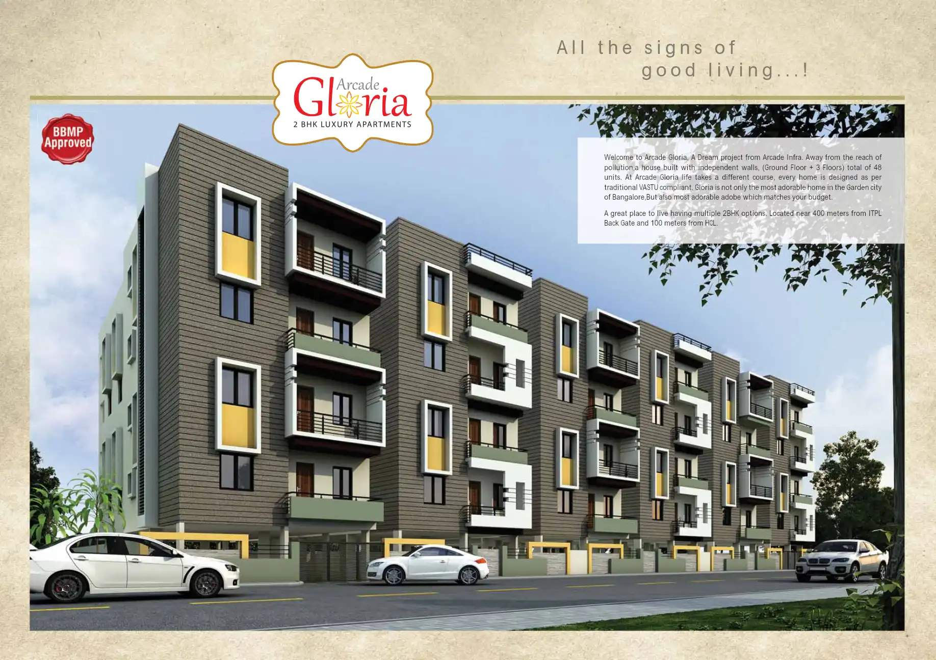 A Dream project from Arcade Infra. Away from the reach of pollution, a house built with independent walls, (Ground Floor + 3 Floors) total of 48 units. Every home is designed as per traditional VASTU compliant.